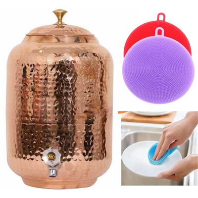 8 Liter Pure Copper Hammered Design Water Jar wit FREE 2 Silicone Pads