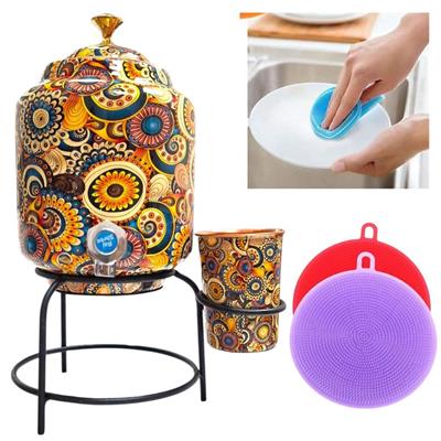 3 Liter Printed Design Copper Water with Stand and Copper Cup with FREE 2 Silicone Pads