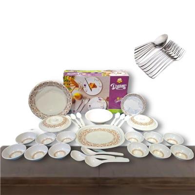 Dream Collection 39pc Melamine Dinner Ware Serve Set + FREE 24pc Stainless Steel Utensils