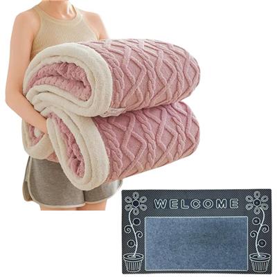 DOUBLE LAYER FLEECE BLANKET WITH REVERSIBLE FLUFFY PLUSH + FREE WELCOME MAT