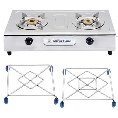 Skyline Stainless Steel Double Burner Gas Stove + Free 2 Stainless Steel Pot Protector Rack