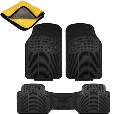 3 Piece Full Set Car Floor Mats + Free Microfiber Cloth