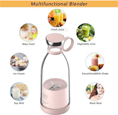 Our portable mini fast blender is made of various high-quality food-grade materials, which are safe and odor-free, and better maintain the fruit flavor. The fresh juicer has a safety guard design that does not turn when the blade and cup are removed. Always protect your safety! The portable blender for milkshakes and smoothies has a powerful motor base and 4 food-grade stainless steel 3D blades. The stainless steel of cutter head made with food-grade technology is durable and has excellent mixing ability, allowing the pulp to be quickly broken without losing dietary fiber. Fresh juice blender bottle has a built-in high-capacity battery, and the safe and convenient charging base is suitable for all USB charging ports. The juice blender can be fully charged in only 2H, and the fully charged state can last make for 15 cups of drinks. The electric personal blender is so easy to clean. When cleaning, you can rotate the detachable base for cleaning. Alternatively, just pour some water and an optional drop of soap into the blender bottle, and you need to double click the ON/OFF button to start automatic cleaning until it is clean. This smoothie blender is great for making nutritious single-portion smoothies, milkshakes, juice blends, mix fruits, vegetable juice, baby food and other foods. You can drink nutritious juices, milkshakes or smoothies wherever you want.