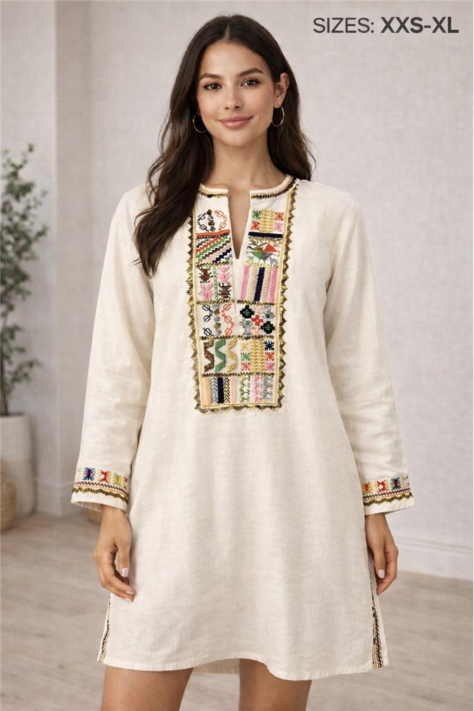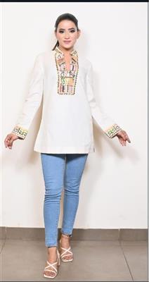Description: Add a touch of culture and elegance to your wardrobe with the Artisan Embroidered Beaded Shirt. Designed with a clean white base, this top features beautifully detailed multi-color embroidery and beadwork along the neckline and sleeves, creating a unique and eye-catching look. The long sleeves and relaxed fit offer comfort and versatility, while the intricate patterns bring a handcrafted, artistic feel. Perfect for both casual and semi-dressy occasions, this top pairs effortlessly with jeans, trousers, or skirts. Key Features: Stylish long sleeve white shirt with embroidery & bead detailing Unique multi-color patterned design for a standout look Comfortable and relaxed fit Lightweight and breathable fabric Perfect for casual wear, outings & special occasions Sizes Available: 0, 2, 6, 10, 12, 14 Stock: 13 pieces available A beautifully detailed piece that blends comfort with artistic elegance for a standout everyday style.