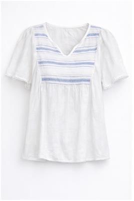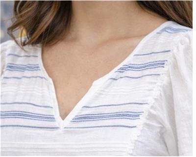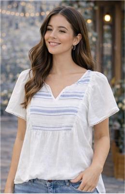 Blue & White Short Sleeve Shirt – Light, Fresh & Effortless Style Stay cool and stylish with this blue & white short sleeve shirt, designed for everyday comfort with a touch of elegance. Featuring subtle striped detailing and a soft, breathable fabric, this top offers a fresh and relaxed look perfect for any occasion. The lightweight design and loose fit provide all-day comfort, while the delicate trim and flattering neckline add a feminine and polished finish. Easy to pair with jeans, skirts, or shorts, this versatile piece is a must-have for your casual wardrobe. Product Details: Soft, lightweight, and breathable fabric Elegant blue and white striped design Short sleeves for a relaxed, airy feel Flattering neckline with subtle detailing Comfortable loose fit for everyday wear Available Sizes: XS, S, XL Perfect for casual outings, brunch, and everyday wear—this shirt blends comfort and style effortlessly.