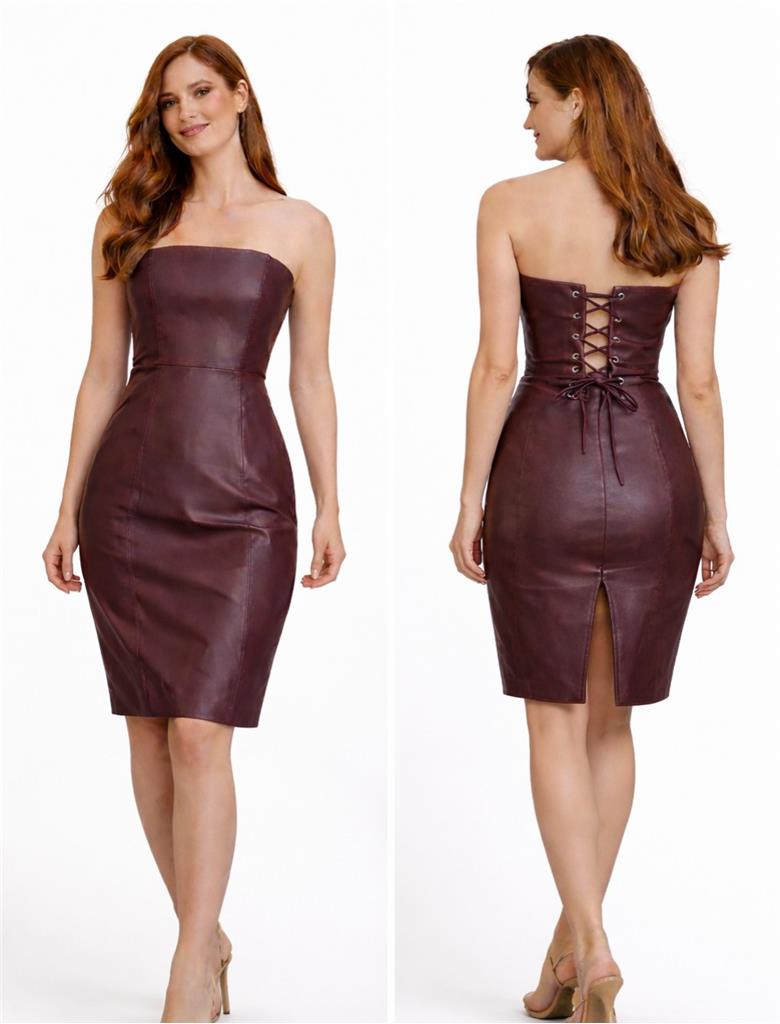 Drawstring Leather Dress – Bold & Sophisticated Style Turn heads with this stunning drawstring leather dress, designed for a sleek, confident, and modern look. Crafted from high-quality faux leather, this dress offers a smooth, structured fit that beautifully enhances your silhouette. Featuring a strapless neckline for a chic, feminine touch and a lace-up drawstring back for an adjustable fit, this piece combines elegance with a bold edge. The fitted design and subtle back slit add comfort and movement, making it perfect for both special occasions and nights out. Product Details: Premium faux leather material with a smooth finish Strapless design for a sleek, modern look Adjustable lace-up drawstring back for a perfect fit Figure-hugging silhouette to enhance your shape Back slit for added comfort and ease of movement Available Sizes: S, M, L Perfect for date nights, parties, and special events—this dress is your go-to statement piece for effortless confidence and style.