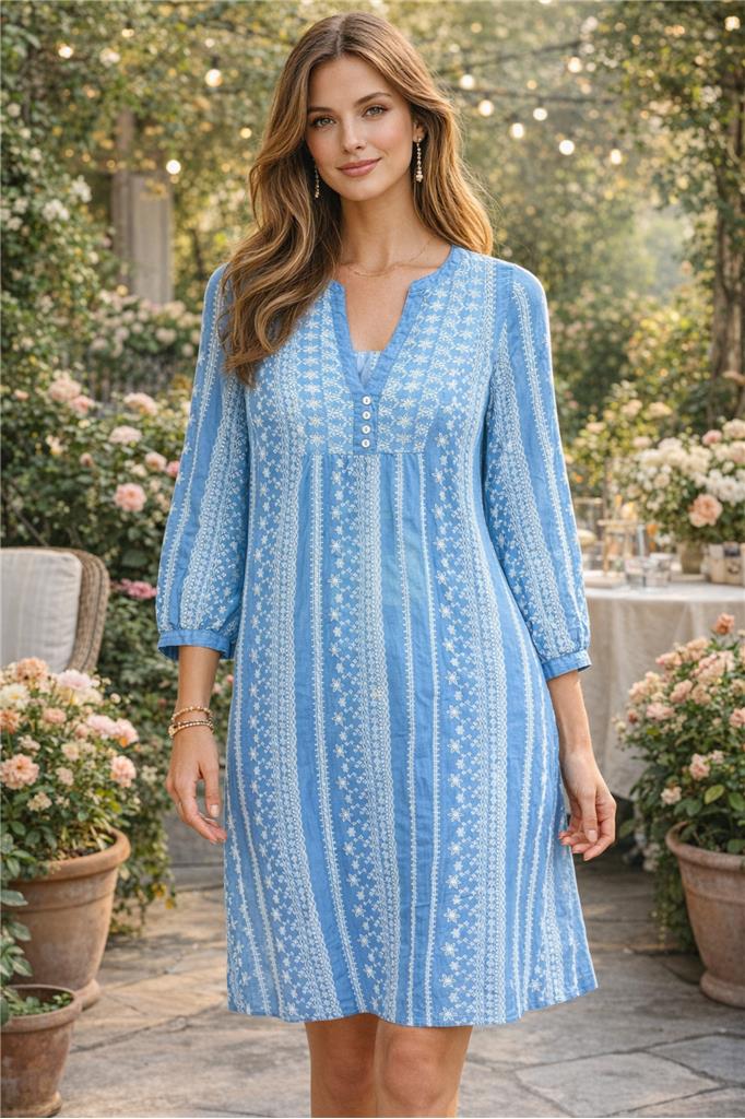 Medium Sleeve Embroidered Dress – Effortless Elegance Step into timeless style with this beautifully crafted medium sleeve embroidered dress, designed to combine comfort with sophisticated charm. Featuring delicate all-over embroidery on a soft blue base, this dress offers a graceful, feminine look perfect for any occasion. The relaxed silhouette and breathable fabric ensure all-day comfort, while the flattering fit and detailed neckline add a touch of elegance. Whether you're heading out for a casual outing, brunch, or a special gathering, this dress is a versatile must-have in your wardrobe. Product Details: Soft, lightweight, and breathable fabric Elegant all-over embroidery design Medium sleeves for a stylish yet comfortable fit Flattering relaxed silhouette Button-detail neckline for added charm Available Sizes: XS, S Perfect for casual wear, day outings, and special occasions—this dress blends comfort and elegance effortlessly. FREE DELIVERY for purchases over $500 Delivery available at $40 nationwide and $60 to Tobago for purchases under $500 FREE collection at extra plaza Endeavour Chaguanas