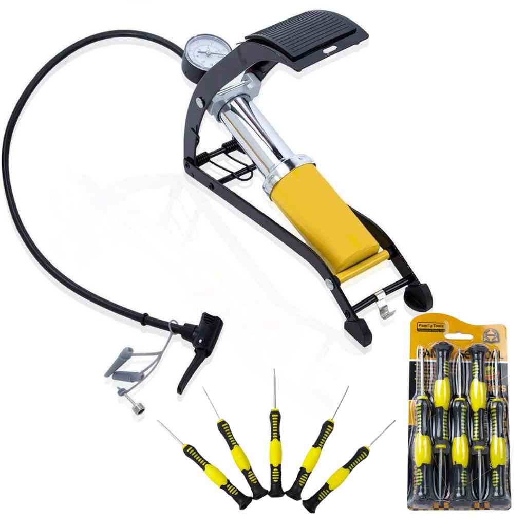 Works with Presta, Schrader, and Deutschland valves – no adapters needed. Reaches up to 160 PSI / 9 BAR – perfect for bikes, cars, balls, and more. Easy to use by adults, kids, and seniors – no hand strain or bending required. Durable aluminum piston and iron base for long-lasting performance. Large, easy-to-read dial ensures precise inflation every time. Lightweight aluminum body fits easily in garages, trunks, or backpacks. Bicycles – Road, mountain, and kids’ bikes – all valve types covered Cars & Motorcycles – Maintain tire pressure at home or on the go Sports Equipment – Footballs, basketballs, volleyballs, and more Inflatables – Pool floats, air mattresses, camping gear Emergency Kits – A must-have for your garage or vehicle trunk FREE 5 PC MINI SCREWDRIVER SET