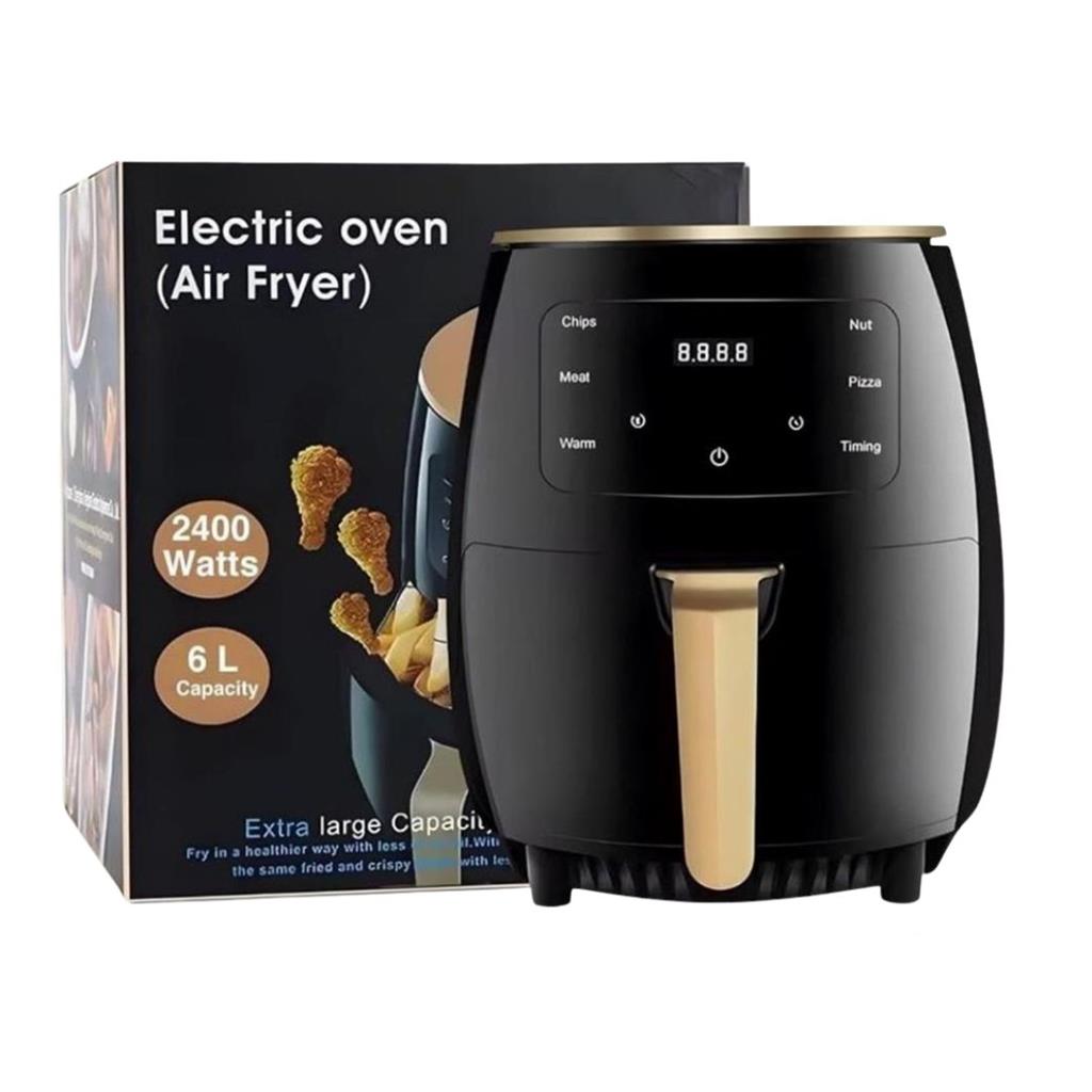 Starlux Smart Digital Air Fryer – Your Healthier, Faster Cooking Partner! Key Features: Faster, Healthier, Crispier Cooking: Enjoy your favorite fried foods with up to 85% less fat and little to no oil. Spacious 6L Capacity (4.5L usable): Perfect for 2–4 people — ideal for quick family meals or festive feasts. Smart Digital LED Touchscreen: Features 4 one-touch presets — Chips, Chicken, Fish & Cake — for effortless cooking every time. Powerful 1400W Rapid Air Circulation: 360° convection technology ensures fast, even cooking and a golden, crispy finish. Non-Stick BPA-Free Basket: Easy food release and quick cleanup after every meal. Sleek & Stylish Design: Available in Black, Red, and Green — compact yet elegant for any modern kitchen. Perfect Size: Measures 29 × 26.5 × 31 cm — fits neatly on your countertop without taking up space.
