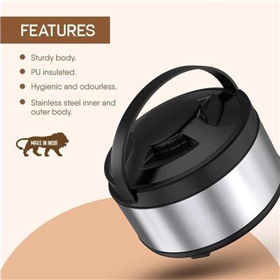 Insulated Stainless Steel Casserole Thermoware Collection Crafted from premium stainless steel, this casserole is durable, rust-resistant, and BPA-free, built to last through every festive feast. With double-wall insulation, your food stays hot for hours. Its spill-resistant lid keeps food secure and mess-free. While the easy-carry handles let you serve in style. Strong, stylish, and practical — it’s everything your kitchen deserves this Festival of Lights.