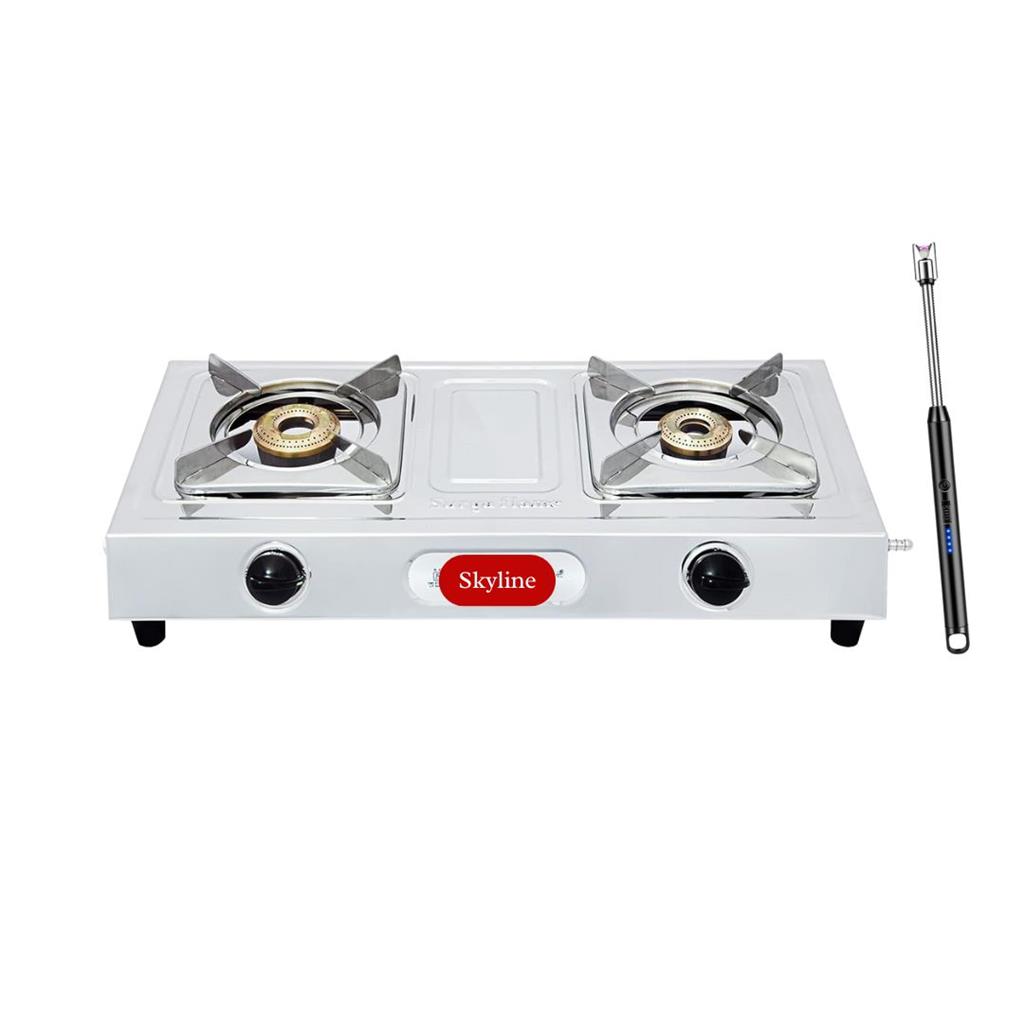 Stainless Steel Double Burner Gas Stove with FREE Rechargeable Electric Arc Lighter Double Burner Power for Faster Cooking – Equipped with two heavy-duty brass burners that deliver strong, even flames for efficient and consistent cooking Premium Stainless Steel Body – Rust-resistant, durable, and easy to clean design built for long-term daily use Uniform Heat Distribution – Ensures perfect cooking results for curries, rice, dal, channa, aloo, pumpkin, and more without heat loss Ideal for Large & Small Cooking Needs – Handles everyday meals as well as large pots with ease, making it perfect for families Compact Yet Sturdy Design – Space-saving size suitable for small kitchens while strong enough for heavy cookware Multi-Purpose Usage – Perfect for home kitchens, outdoor cooking, river limes, camping, and backyard gatherings Smooth & Efficient Flame Control – Allows precise heat adjustment for simmering, boiling, or fast cooking FREE USB Type-C Rechargeable Electric Arc Lighter – Windproof, flameless, eco-friendly lighter included with every purchase Safe & Convenient Lighter – Rechargeable design eliminates the need for gas refills or matches, ideal for indoor and outdoor use Reliable & Practical Cooking Solution – A powerful stove and smart lighter combo designed to upgrade your everyday cooking experience
