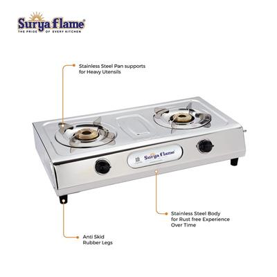 100% Brass Skyline Double Burner Gas Stovetop, built for festive feasts and everyday meals alike. Its stainless steel rust-proof body and removable pan supports with drip tray make cooking cleaner and easier than ever. Thanks to auto ignition & 69% thermal efficiency and a powerful blue flame. Flexible nozzle design? ✅ Certified for safety? ✅ Built to last? ✅ This stove has it all.