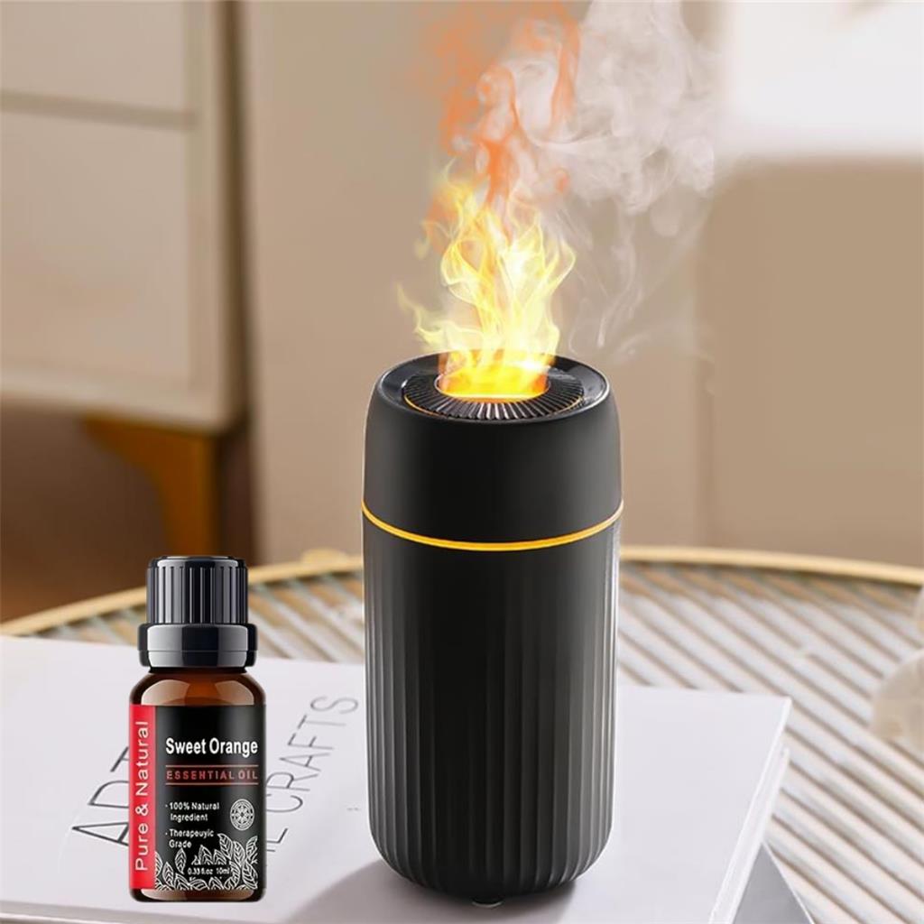 Car Flame Humidifier with Aromatherapy – Holiday Edition Holiday Bonus: Includes a free fragrance oil with every purchase — perfect for gifting! Multifunctional: Acts as a humidifier, aroma diffuser, and mood light in one sleek device. Flame-Inspired LED Light: Features 7 soothing LED rainbow colors that simulate a soft flame — lock your favorite to suit the festive mood. Ultrasonic Nano-Mist Technology: Provides ultra-fine mist for hydrated skin, better breathing, and boosted mood. Perfect for Any Space: Ideal for cars, bedrooms, offices, nurseries, bathrooms, and meditation rooms. Modern Type-C Design: Fast and stable charging with a Type-C plug for ultimate convenience. All-Day Mist: 100ml tank offers long-lasting misting without frequent refills. Whisper-Quiet Operation: Ultra-quiet, making it perfect for sleep, work, or meditation. Energy-Efficient: Consumes less than 5 watts, making it eco-friendly and cost-effective. Built to Last: Made from durable, high-quality ABS material. Color Options: Available in classic white and sleek black. Compact & Stylish: Small enough for your car, elegant enough for your home. Zen on the Go: Transforms any space into a relaxing, fragrant retreat — wherever you are.