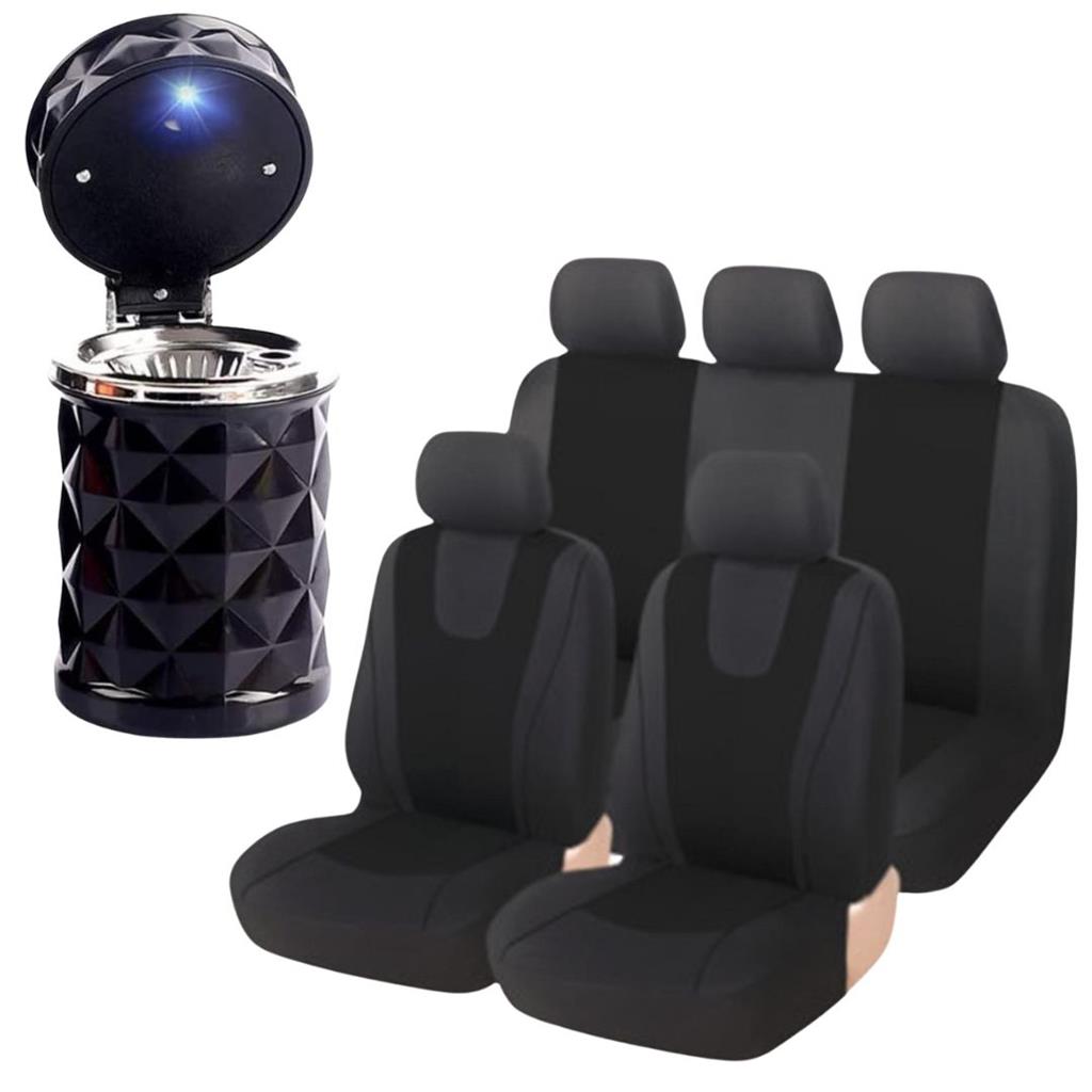 Upgrade your ride in minutes with our 7-Piece Black PU Leather & Fabric Car Seat Cover Set — now with a FREE Clip-On Trash Bin & Ashtray!" Perfect for Families, Pet Owners, Uber Drivers, and Anyone Who Wants a Cleaner, Classier Cabin! 🖤 Style Meets Comfort ✅ Luxurious black leather + breathable fabric ✅ Soft sponge layer for extra cushioning ✅ Fits most cars, SUVs & trucks — NO cutting! 🛡️ Built to Last Complete 7pc Set Includes: ✔️ Driver + Passenger seat covers ✔️ Backrest + Rear seat ✔️ 2x Headrest covers 🎁 FREE Clip-On Trash Bin & Ashtray