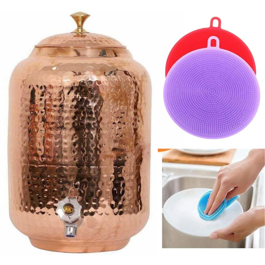 🏺 Copper Jar Highlights ✅ Enriched Copper Water – Fill & let it sit for 6–8 hours for maximum benefits ✅ Convenient Tap Dispensing – Easy to use at home, office, or gatherings ✅ Versatile Placement – Kitchen, dining, living room, office, or festive display ✨ Why Copper? ✅ Natural Immunity Booster – Fights harmful bacteria & strengthens the body’s defense system ✅ Aids Digestion – Balances pH levels & supports healthy metabolism ✅ Anti-Inflammatory Properties – Valued in Ayurveda for healing & reducing inflammation ✅ Fresh & Energized Water – Naturally purifies, cools & revitalizes drinking water ✅ Timeless Wellness Tradition – Practiced in Ayurveda for centuries for daily health benefits +✅ Bonus Care Kit – Includes 2 free silicone scrub pads to keep your copper shining