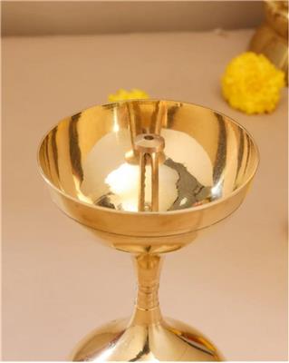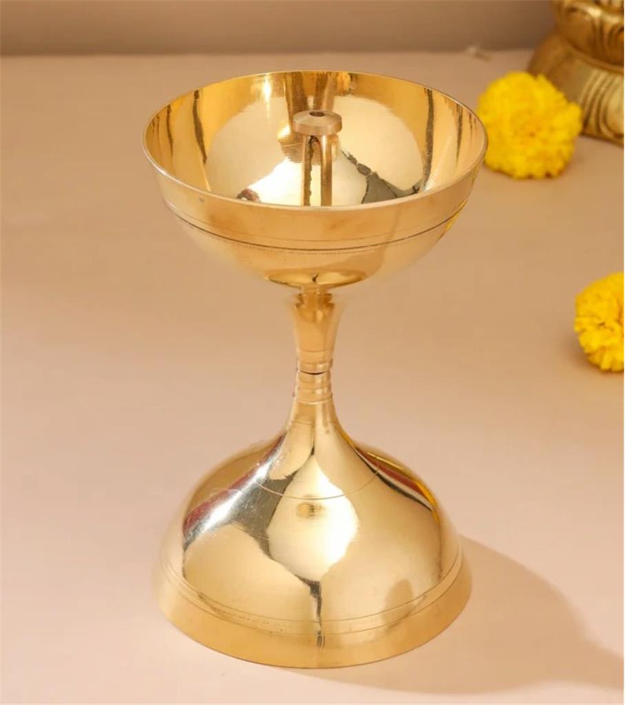 Light up your prayers, light up your home – with the Brass Nanda Deep! Crafted in pure brass with a heavy base, this diya is perfect for daily puja, festive rituals, temple use, or as an elegant gift for loved ones this Diwali season. Its traditional design allows easy cleaning and effortless oil refilling, making it ideal for maintaining an Akhand Jyot – the eternal flame of positivity and devotion.