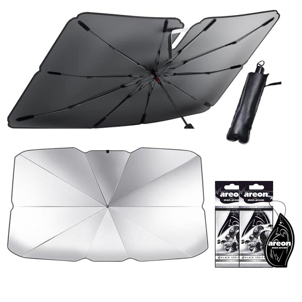 ✅ Strong & Durable Design – Built with 10 alloy-fiber ribs for maximum strength and stability; no bending or sagging ✅ Titanium Silver UV Protection – Blocks up to 99% of harmful UV rays, preventing dashboard, seats, and steering wheel damage ✅ Universal Fit – Measures 46.45" (top) × 57.08" (bottom) × 30.7" (height) — ideal for most cars, SUVs, and trucks in Trinidad (check your windshield size for best fit) ✅ Upgraded Umbrella-Style Mechanism – Opens and closes in seconds for quick use; includes puncture-proof tip covers to protect your interior ✅ Compact & Portable – Easily folds into a sleek leather storage case that fits in your glove box, side pocket, or door slot ✅ Easy to Use – No tools, no setup — just open, place, and secure for instant shade and heat protection ✅ Bonus Gift – Comes with 2 FREE car air fresheners, keeping your car cool and smelling great wherever you go
