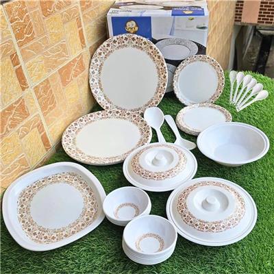✨ Dream Collection 39-Piece Melamine Dinnerware Serve Set ✅ Celebrate Diwali in Style – Dazzle your dining table with a set that blends durability, elegance, and convenience. ✅ Complete 39-Piece Dinnerware Set Includes: 1 Large Serve Plate – perfect for snacks like pholourie, samosas & festive treats 6 Spoons + 3 Serving Spoons – ideal for everyday dining & curries 3 Serving Bowls with 2 Lids – keeps food warm & fresh 12 Small Bowls – great for chutneys, sauces & desserts 6 Dessert Plates – for sweets like gulab jamun or barfi 6 Large Dinner Plates – for generous festive servings ✅ Premium Quality Melamine – Break-resistant, lightweight, and easy to clean — ideal for daily use or special occasions. ✅ Elegant & Practical – Easy to clean, easy to store, and beautifully coordinated for festive dining. ✅ Perfect for Every Occasion – From family feasts to festive gatherings, it adds a touch of class to every meal. ✅ Makes a Thoughtful Gift – A timeless present for loved ones that brings joy to every dining experience + FREE 24-Piece Stainless Steel Utensil Set – Durable, shiny & perfectly complements your dinnerware.