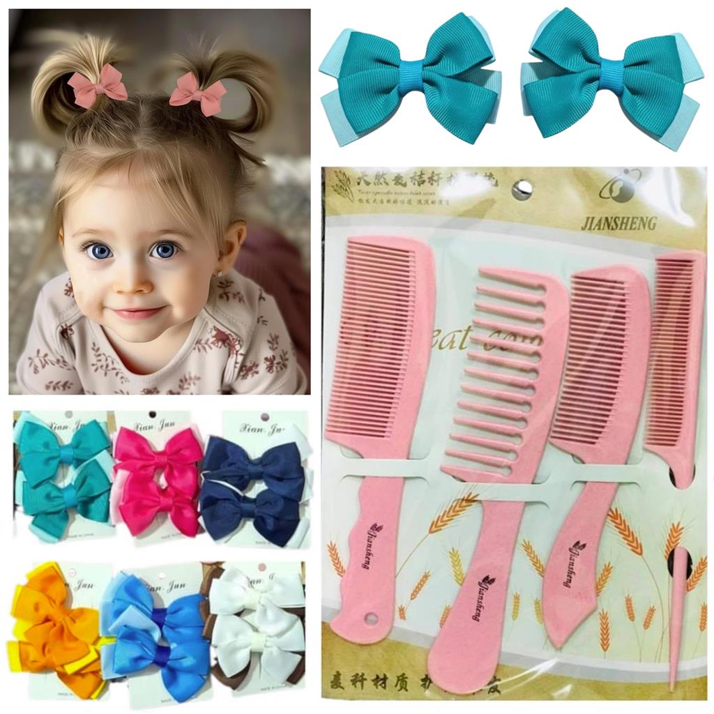 Christmas Sale🎅🏼🎄 ✅ Complete Styling Set – Includes 12 adorable two-tone bow clips + 4-piece grooming comb set for effortless, everyday styling. ✅ Soft & Secure Bows – Each 6cm x 8cm bow is gentle on hair, perfectly sized, and designed to stay in place all day ✨ ✅ Vibrant Shades – Comes in yellow, pink, light blue, sea green, brown, and dark blue — to match every outfit and mood 🎨 ✅ Easy Styling Tools – The 4-piece comb set helps moms detangle, section, and style hair like a pro — from ponytails to cute buns! ✅ Perfect for Every Occasion – Ideal for school mornings, parties, playdates, or festive celebrations — always picture-perfect 📸 ✅ A Gift of Joy – Thoughtful, practical, and fun — a beautiful gift for birthdays, holidays, or back-to-school surprises