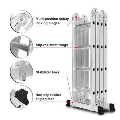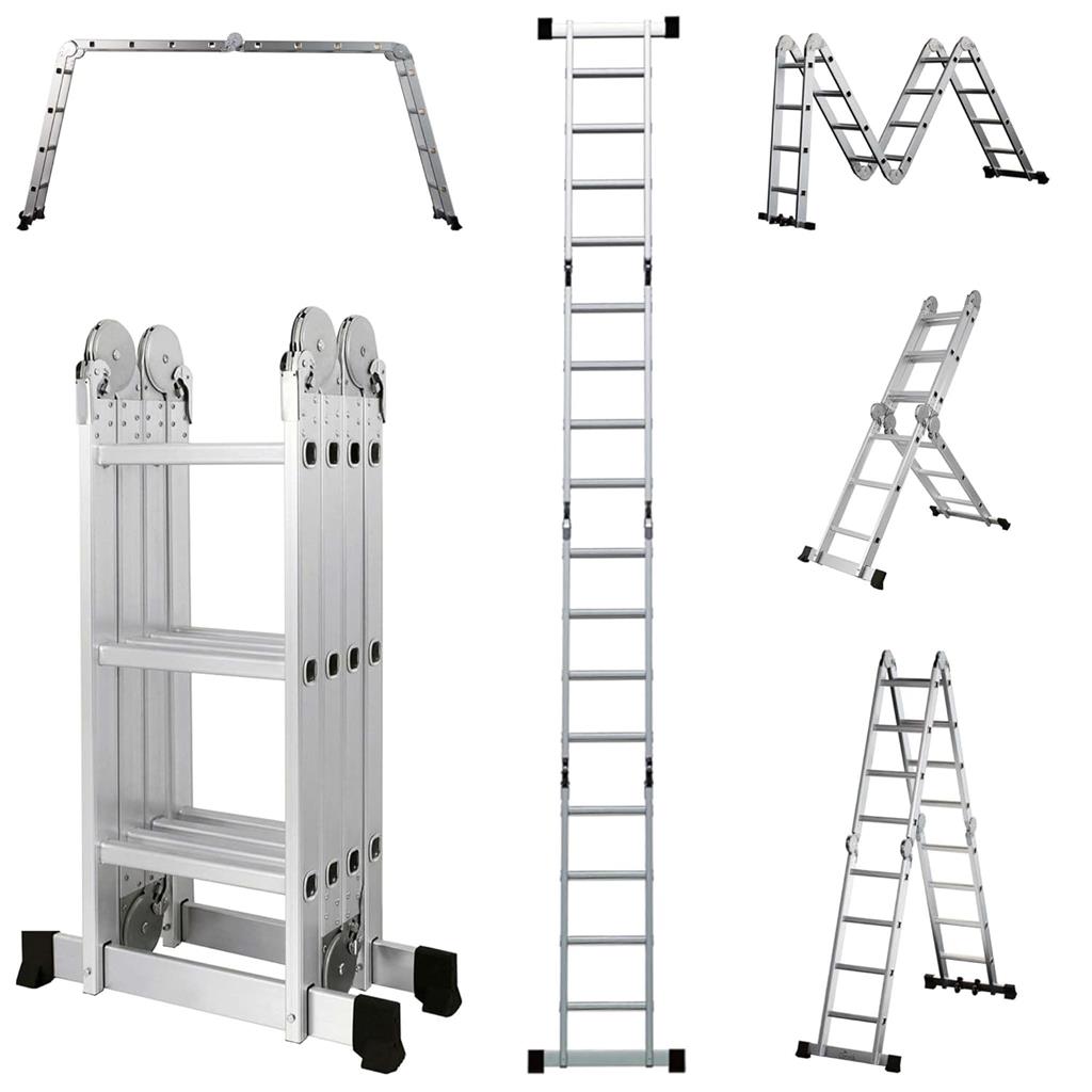 Material & Color: Our Multipurpose Folding Ladders are built from Heavy-Duty Aluminium, and is completely rust proof, durable and strong. Colour: Silver. Size & Capacity: This folding ladder can be used in 7 Different Size. The Weight Capacity of this Ladder is 150kg. Multipurpose Position: This ladder can be used in different position to help you easily do your work. The positions include Step Ladder position, Straight Ladder position, Stand-off Ladder position, Scaffold Position & A Type Position. Designed For Safety: Adopting the design of zigzag anti-slip foot straps, which can prevent ladder from sliding during use to a certain extent with stabiliser bars on both ends, anti-slip feet, and grooved rungs. Assembly Instruction: No Assembly Required. Connected by security hinges locks, which can be opened and locked for changing the shape of ladder easily while guaranteeing the security.