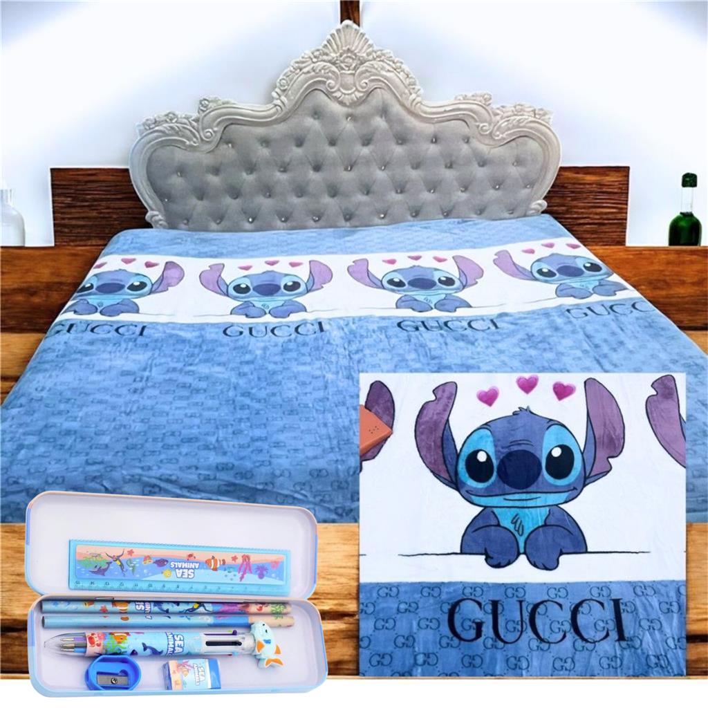 Say hello to our adorable Stitch Blanket Collection — where comfort meets cuteness! 💙💗🖤 Available in three cozy colors — Blue, Pink, and Black — each one designed to bring warmth & smiles. King Size Comfort – a generous 200 cm x 230 cm, perfect for snuggling up with family, or adding a stylish touch to your bed this holiday season. Featuring the lovable Stitch design with luxury-inspired detail, it’s soft, lightweight, and perfect for movie nights, chilly evenings, or gifting someone special. Comes with FREE Stationary Set