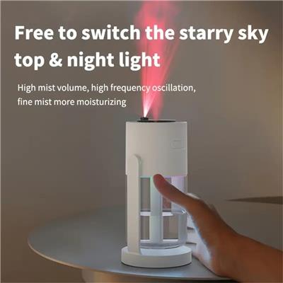 Starry Sky Top Humidifier with RGB – Comfort, Calm & Beauty in One Key Features: 3-in-1 Multifunction Design: Acts as a humidifier, cool mist diffuser, and RGB night light with starry sky projection — perfect for any space. Soothing Starry Projection: Creates a dreamlike glow that turns your bedroom, office, or nursery into a relaxing atmosphere. Two Mist Modes: Choose between continuous or intermittent mist to keep your air fresh and perfectly balanced. 360° Adjustable Mist Direction: Easily rotate the nozzle to direct the mist exactly where you need it. Ultrasonic Quiet Technology: Operates silently for uninterrupted sleep, work, or relaxation. Customizable RGB Lighting: Long press to switch colors and set the ideal mood for any moment — from calm evenings to cozy nights. Health & Comfort Benefits: Helps moisturize dry air and skin, ease breathing, and improve sleep quality for kids, adults, and the elderly. Compact Yet Powerful: 280ml capacity with 4–8 hours of continuous operation for lasting freshness. Auto Shut-Off Safety: Automatically turns off when water runs out to protect the device and ensure safe use. USB Powered: Convenient and portable — plug it into your car, laptop, power bank, or bedside outlet anywhere, anytime. Perfect Gift Idea: Stylish, functional, and calming — an ideal gift for family, friends, or yourself.