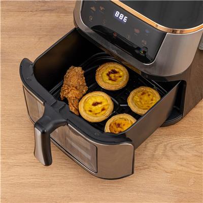 Product Description Points: Smart, Healthy & Fast Cooking: Discover a better way to cook your favorite meals with less oil and more flavor. Visible Glass Window: Built-in viewing window with cooking light lets you watch your food turn golden and crispy in real time ā no need to open the basket. Powerful 360° Hot Air Circulation: Ensures even cooking with 900 watts of power for perfectly crisp and tender results every time. Large 10L Capacity: Spacious basket easily meets the daily cooking needs of the whole family, from quick snacks to full meals. Oil-Free Cooking: Prepare fries, meats, fish, veggies, and even dried fruit with little to no oil ā enjoy healthier meals without sacrificing taste. Digital Touch Control Panel: Simple, user-friendly interface to set temperature, timer, or preset programs with precision and ease. Crispy Outside, Tender Inside: Advanced air circulation cooks food evenly for delicious, guilt-free results. Free Bonus Gift: Comes with a FREE Mini Food Processor Chopper ā perfect for quick chopping, mixing, and meal prep convenience. Family-Friendly Design: Ideal for preparing meals for multiple people, saving both time and effort. Lightweight & Easy to Clean: Compact and easy to move, with non-stick components for hassle-free maintenance.