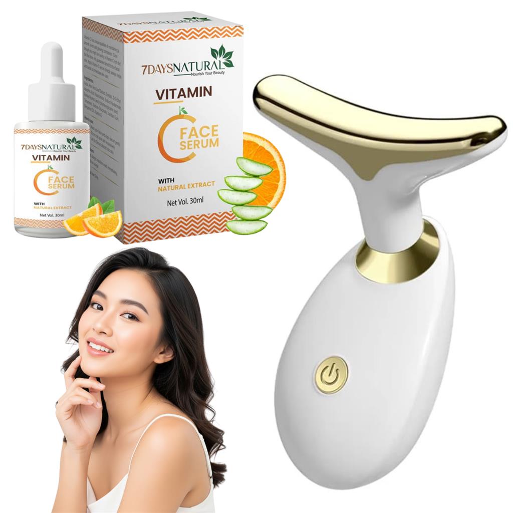 High-Frequency Vibration Technology: Delivers 10,000+ sound waves per minute to relax the skin and improve product absorption. Enhanced Skincare Results: Helps serums and creams penetrate deeper into the pores for more visible, effective results. Adjustable Speed Settings: Customize each session for lifting, tightening, contouring, or sculpting. No-Light Model: Pure vibration technology for gentle, effective skincare without LED lighting. Rechargeable & Convenient: Powered at 2.5W with a 2-hour charging time for easy, wireless use. Compact & Ergonomic: Designed at 125 × 51 × 154 mm, comfortable to hold and perfect for daily routines. Simple Usage: Cleanse skin, apply skincare, activate the massager, and enjoy improved absorption and radiance. Multiple Benefits: Helps reduce dullness, sagging, and weak absorption while boosting firmness and glow. FREE Vitamin C Face Serum: Brightens, nourishes, and enhances your skincare results.