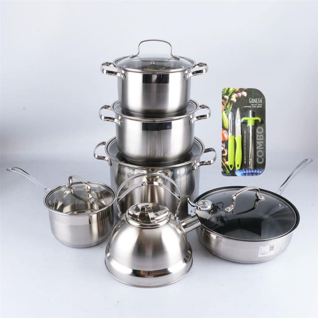 Starlux 12-Piece Stainless Steel Kitchenware Set And to make it even better—you’ll get FREE gifts with every purchase: a gas lighter, knife, and vegetable peeler! Why This Set Is a Must-Have: ✔️ Super-capsulated step-bottom base (5× thick) for faster, even heating ✔️ Perfect for stews, soups, tea, pelau, curries, pasta, macaroni pie & more ✔️ Mirror-polished stainless steel—shiny, durable, long-lasting ✔️ Ribit, heat-resistant handles—strong, comfortable, and wobble-free ✔️ Tempered glass covers—see your food without lifting the lid ✔️ Measurement markers inside for accurate cooking ✔️ Works on gas & electric stoves ✔️ 100% chemical-free and safe for the whole family 🍳 12-Piece Set Includes: • 2.2L whistle kettle with cover • 2L long-handle pot • 2.9L double-handle pot • 3.3L frying pan with medicated non-stick inner coating • 3.9L double-handle pot • Large 8.3L family-size pot • Tempered glass covers for each piece 🎁 FREE Christmas Gifts Included: ✨ Gas lighter ✨ Knife ✨ Vegetable peeler
