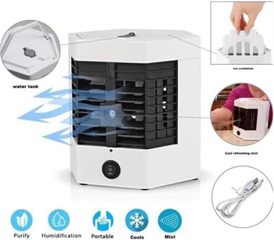 Stay Cool. Stay Focused. Stay Comfortable. Dual Tank Innovation. Fill the top tank with water — or add ice cubes for next-level chill. Smart Features You’ll Love: 🔹 USB Powered — plug it into your laptop, power bank, or adapter. 🔹 Adjustable Air Vent — direct your cool breeze exactly where you want. 🔹 Compact & Portable — take it anywhere — kitchen, office, study desk, or even outdoors! Three Cooling Modes — One Refreshing Experience ✅ Natural Air — gentle, fresh airflow for everyday comfort. ✅ Cold Air — chilled breeze for instant cooling relief. ✅ Humidification Cold Air — cool + moisture-rich mist for deep, refreshing comfort.