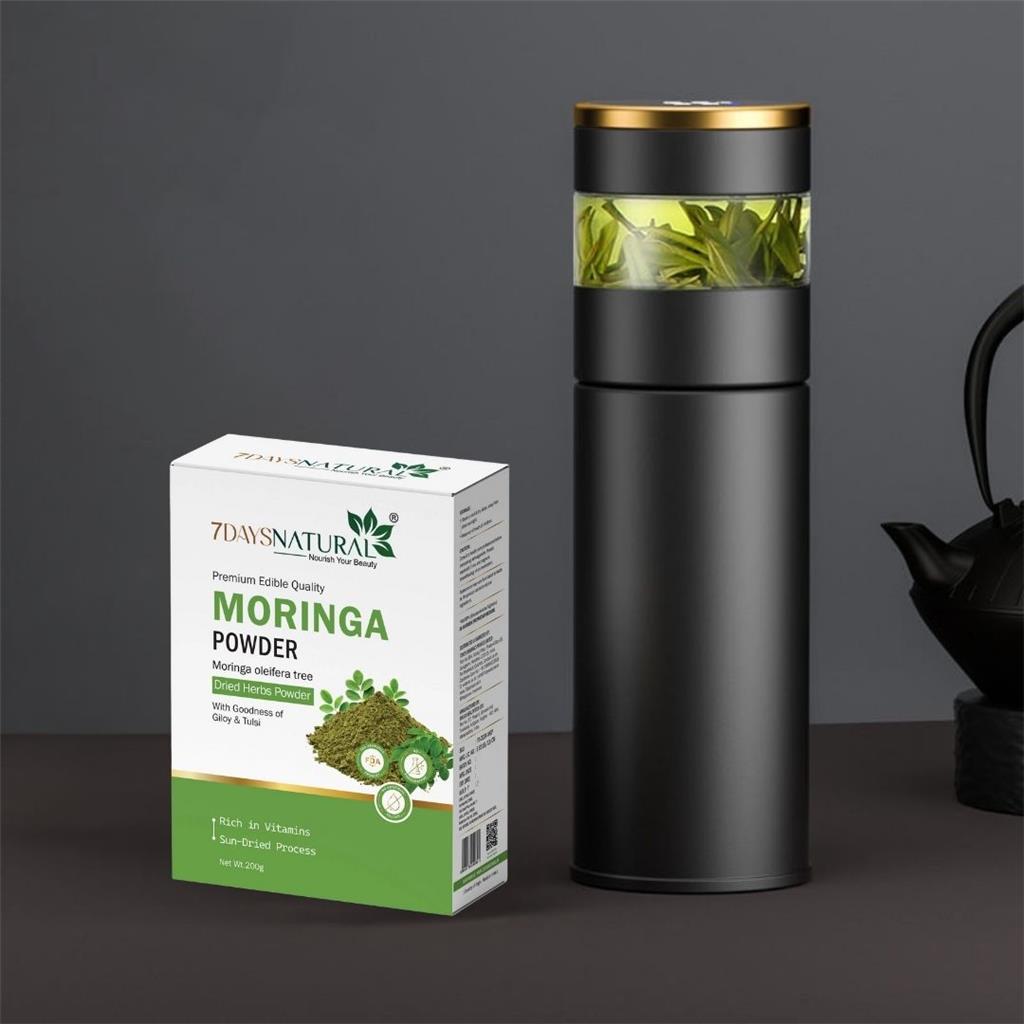 the Intelligent Thermos Cup + Pure Moringa Powder. Whether you’re at home, at work, or on the go, this smart duo elevates every sip and every moment. ✨ Smart, Stylish & Built for Everyday Wellness ✔ Touch-activated LED temperature display — always know the exact warmth before you sip ✔ 450ML double-wall vacuum insulation — keeps drinks hot for 12 hours and cold for 24 ✔ Premium stainless steel (BPA-free) — durable, leakproof, and travel-ready ✔ Metal infuser included — brew fresh tea, hibiscus, detox blends, fruit infusions, or coffee anywhere ✔ Slim, portable design — fits perfectly in car cup holders, handbags, laptop bags, and gym backpacks Pure Moringa Powder: A potent, nutrient-rich superfood for daily wellness. High in Natural Goodness: Packed with plant protein, essential vitamins, and minerals. Daily Intake: Commonly recommended 5–10g per day for balanced nourishment. Supports Overall Vitality: Helps promote energy, wellness, and daily health. Trusted Natural Supplement: Highly valued for its powerful nutritional profile. 🎁 Elegant, Functional & Gift-Ready Perfect for tea lovers, health lovers, fitness enthusiasts, office workers, travelers — and anyone starting a wellness journey. Stay hydrated, stay healthy, and sip smarter every day with this premium herbal wellness combo.