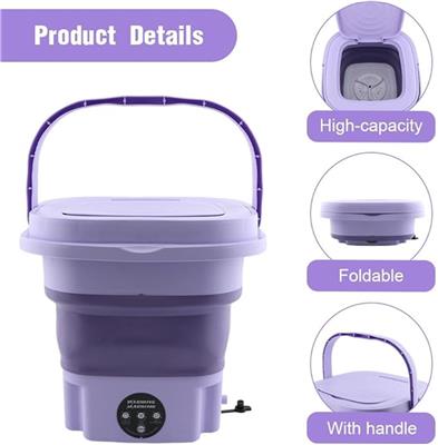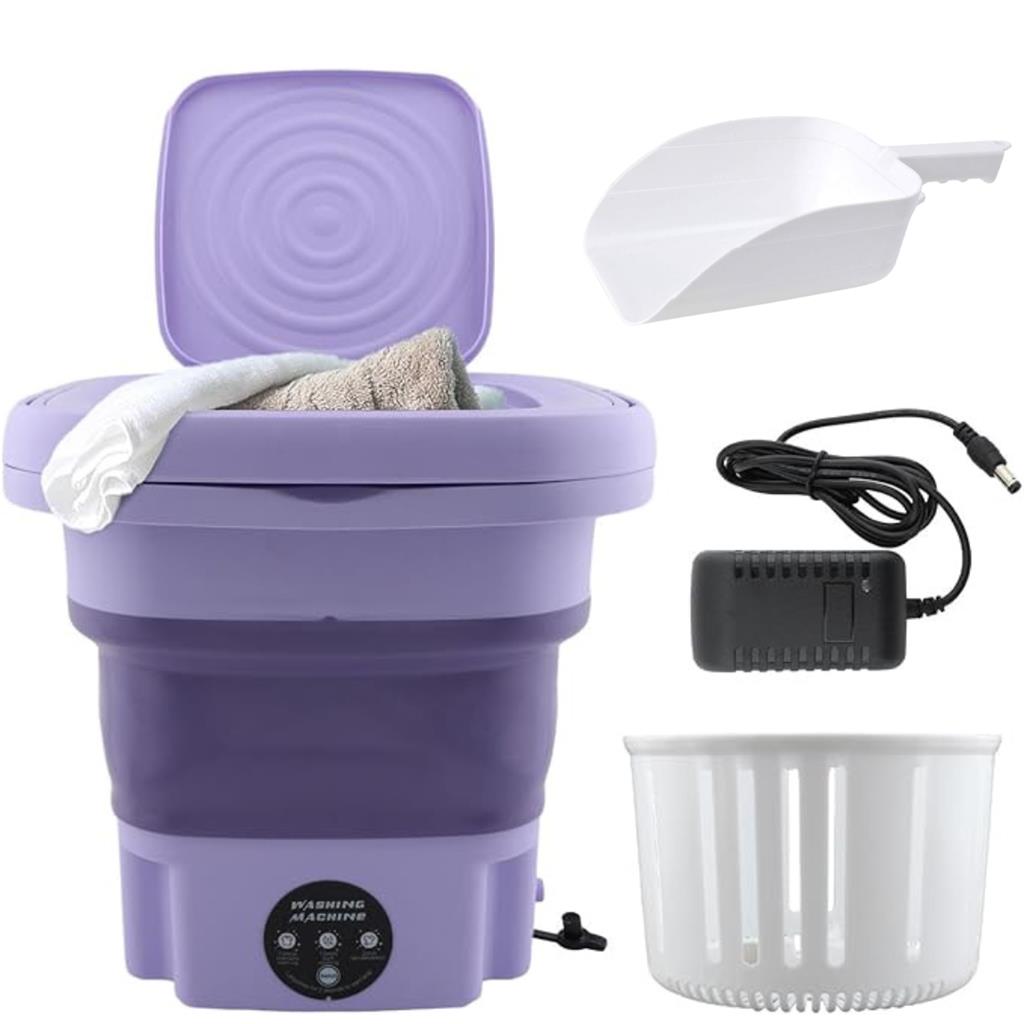 12L UV Sterilization Washing Machine & Dryer — Key Description Points Compact 12-Liter Capacity — perfect for small loads, delicates, baby clothes, and travel laundry. Space-Saving Foldable Design — easily stores under beds, inside cabinets, or hangs on the wall. Portable & Travel-Friendly — ideal for apartments, dorms, RVs, camping, and on-the-go washing. Advanced UV Sterilization — eliminates bacteria and germs for cleaner, safer clothing. 3 Smart Wash Operations 15-Min Soft Wash — gentle on delicate fabrics. 10-Min Standard Wash — powerful cleaning for everyday clothes. 2-Min Semi-Dehydration Cycle — quick spin for faster drying. Ultrasonic + Pulsator Technology — deep cleaning that removes dirt and residue more effectively. Automatic Forward & Reverse Rotation — ensures thorough washing from every angle. Detachable Drain Basket — doubles as a mini dryer for socks, underwear, towels, and baby items. Comes with a FREE Detergent Scoop for added convenience. Stylish Color Options — available in Purple, Blue, and Green. Compact Size — measures 31 × 13 × 46 cm, perfect for limited spaces. Energy-Efficient & User-Friendly — easy operation with powerful results.