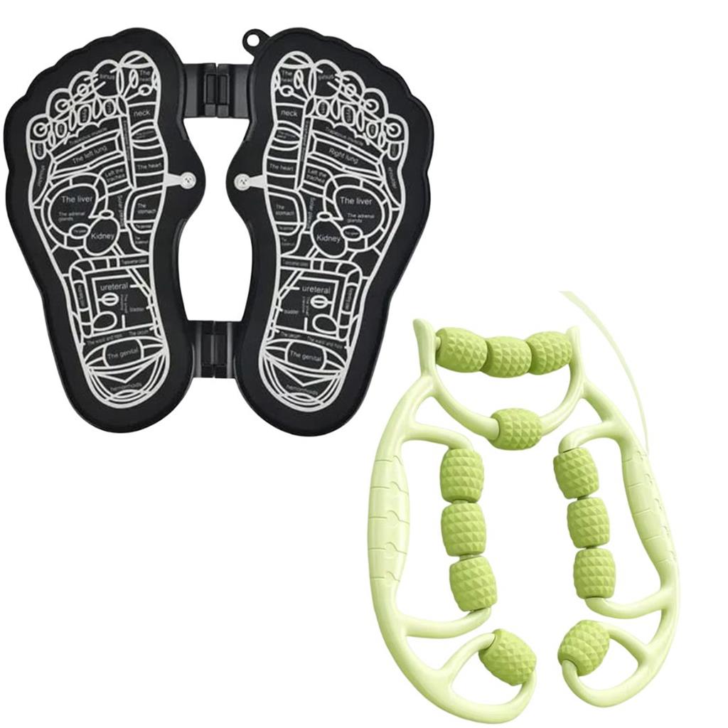 🔌 Advanced EMS Technology — Uses Electrical Muscle Stimulation to activate muscles just like natural walking 🎛️ 8 Massage Modes + 19 Intensity Levels — Fully customizable to suit your comfort and therapy needs 🩸 Improves Blood Circulation — Helps reduce swelling, numbness, and fatigue ❄️ Reduces Inflammation & Cramps — Ideal for sore feet, stiffness, and muscle 🦶 Relieves Plantar Fasciitis Pain — Targets pressure points for deep foot relief 😴 Promotes Relaxation & Better Sleep — Perfect for long workdays or standing hours 🧳 Foldable, Lightweight & Wireless — Use at home, office, or while traveling It’s lightweight, foldable, portable, and fully wireless, so you can use it at home, at your desk, or even while traveling. FREE 18-Ball Roller Deep Tissue Massager Designed with 18 smooth-rolling wheels and an ergonomic grip, it glides effortlessly over your back, neck, legs, and feet—relieving tension, stiffness, and muscle fatigue in seconds. SOLD BY EZBUY