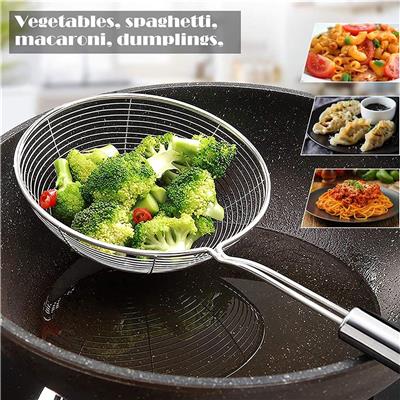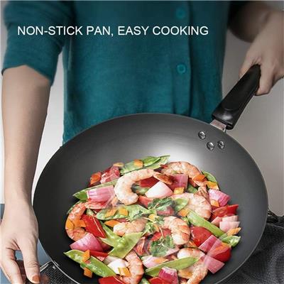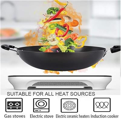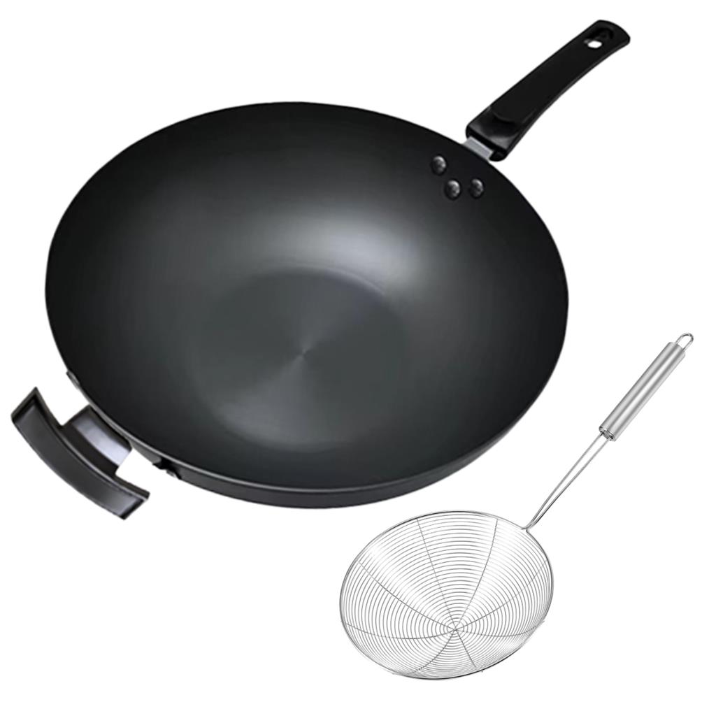Product Description Points: Large 15-Inch Carbon Steel Wok: A spacious cooking wok measuring 15 inches wide (circumference), perfect for preparing generous portions of your favorite dishes. Durable Carbon Steel Construction: Made from premium carbon steel, known for its exceptional durability, rapid and even heating, and its ability to develop a natural non-stick surface when properly seasoned. Improved Cooking Performance: Lightweight yet sturdy, making it easy to lift, toss, and maneuver—ideal for high-heat stir-frying. Long Handle for Better Control: Features a long, comfortable handle that keeps your hand safely away from heat while offering superior control during cooking. Perfect for Asian Cuisine: Excellent for tossing and frying noodles, chowmein, wontons, and all your favorite Chinese and Korean dishes. Seasoning Friendly: Carbon steel woks generally require seasoning before their first use. This helps build a long-lasting natural non-stick surface and prevents rust. Even if pre-seasoned, a bit of additional seasoning is recommended for best results. Bonus Strainer Spoon Included: Comes with a free strainer spoon, making frying, draining, and serving even more convenient. Versatile Cooking Tool: Suitable for gas, electric, and other compatible stovetops depending on setup; perfect for home kitchens or restaurant-style cooking.