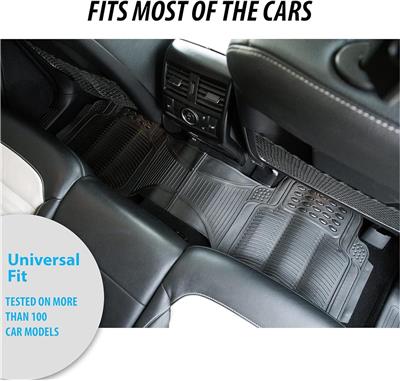 Product Description Points: Premium Full Set Protection: Transform your car’s interior with a 3-piece full set of heavy-duty car floor mats designed for maximum durability and coverage. Heavy-Duty Rubber Build: Made from long-lasting, crack-resistant rubber for superior strength and performance. Universal Fit: Flexible material molds to most car interiors for a secure, semi-custom fit. Trim-to-Fit Design: Easily trimmable edges allow you to customize the mats to perfectly match your vehicle’s flooring. ClimaProof Technology: Protects your car from snow, rain, mud, moisture, and debris—ideal for all-weather conditions. Easy to Clean: Simply wipe or wash with soap and water for a fresh, like-new look after every drive. Sleek Modern Look: Finished in classic black to match any car interior. Free Microfiber Cloth: Comes with a complimentary microfiber cloth for quick cleanups and added convenience.