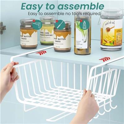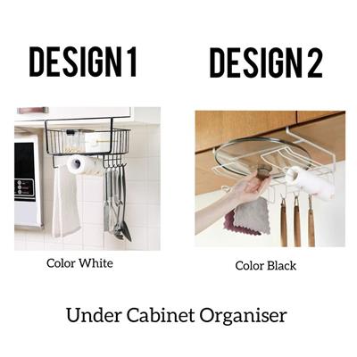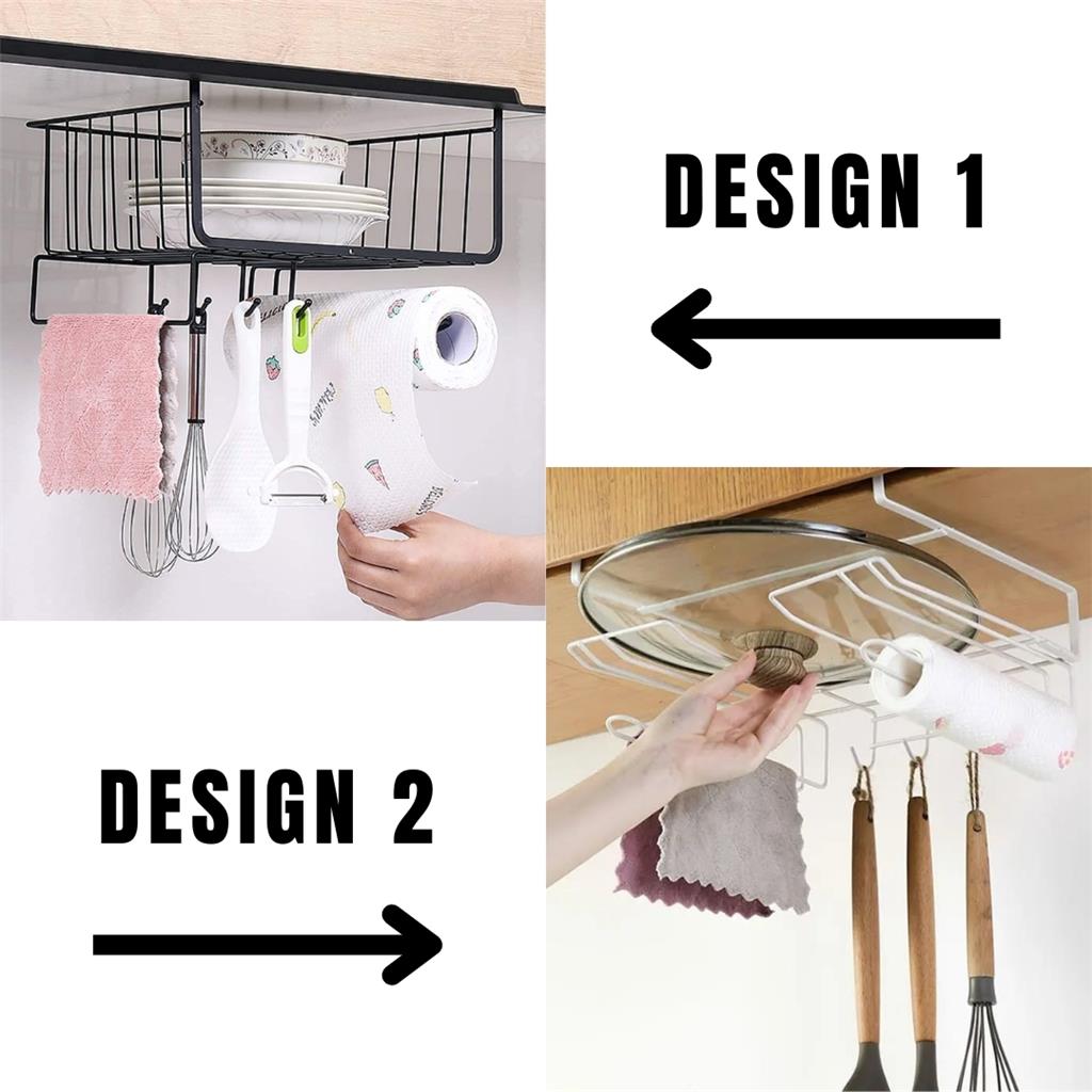 ✨ DESIGN #1 – Hanging Wire Organizer Basket 🔧 Instant Under-Shelf Setup — No tools, no drilling, just slide & organize. 📦 5-in-1 Storage System — inner shelf, side hooks, long hooks & towel holder for total utility. 🧺 Perfect for Kitchen, Laundry, Office, Kids Room — organize every corner effortlessly. 🧱 Heavy-Duty Iron Wrought Build — strong, stable & long-lasting performance. 🤍 Available in White Only — clean, modern look that suits any space. 📚 Maximize Vertical Space — converts unused shelf space into smart storage. 🧴 Ideal for Spices, Stationery, Toiletries & More — truly multipurpose. 🔗 4 Side Hooks — hang ladles, scissors, keys or small towels. 🪝 2 Long Under Hooks — perfect for mugs, bags or kitchen tools. 🧻 Built-In Towel Holder — convenient spot for tissue or hand towels. 🏠 Compact & Space-Saving — 30 × 24.5 × 10.3 cm for tight spaces. ✨ Modern Wire Design — stylish, durable & low-maintenance. ✨ DESIGN #2 – Under-Cabinet Multifunctional Rack 🖤 Available in Black Only — sleek, modern & durable finish. 🪟 3 Smart Sections — holds lids, boards, utensils & more in one compact rack. 🍲 Dedicated Slot for Pot Lids/Boards — keeps bulky items upright & easy to grab. 🧻 Paper Towel Holder — clean, convenient & space-saving. 🪝 Hooks for Utensils & Mugs — includes both long & short hooks for flexible use. 🔩 No-Drill Installation — perfect for renters & hassle-free setup. 📏 Space-Saving Under-Shelf Design — frees up counter & cabinet space instantly. 🌟 Multipurpose Use — ideal for kitchens, pantry shelves & storage cupboards. 🏠 Compact & Space-Saving — 28.5 × 24.5 × 11.5 cm for tight spaces. 🧼 Keeps Surfaces Clutter-Free — store more, stay organized effortlessly. 💪 Sturdy Wire Construction — built to last with excellent load support.