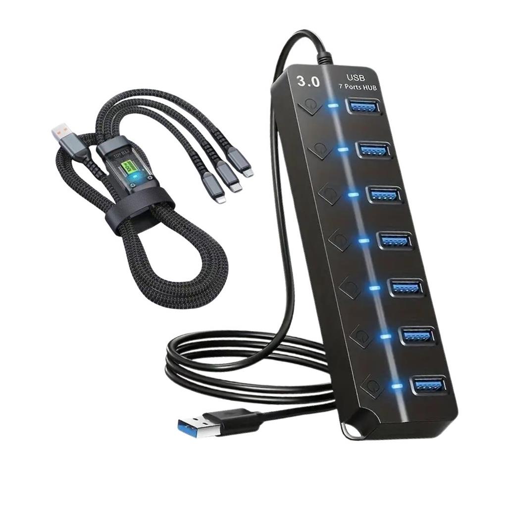 š Ultimate Christmas Tech Combo ā Get the 7-Port USB 2.0 Hub + 100W 3-in-1 Fast Charging Cable ā the perfect upgrade for students, gamers, professionals, and tech lovers. š 7 USB Ports for Easy Expansion ā Connect your keyboard, mouse, flash drive, printer, card reader, and more all at once. No more switching or unplugging devices. ā” Individual ON/OFF Switches ā Each port has its own power switch and LED indicator, giving you full control and saving energy while protecting your devices. š Extra Power for Heavy Devices ā Includes a USB-to-DC power cable to support power-demanding accessories and ensure smooth, stable operation. š Long 1.2m Cable & Sleek Design ā Lightweight, portable, and easy to mount with a built-in cutout ā perfect for desks, home offices, and travel setups. š„ 100W 3-in-1 Fast Charging Cable ā Charge Lightning, Type-C, and Micro USB devices with one cable. Features smart chip protection and LED transparent design. ā” Super-Fast & Durable ā Supports 100W fast charging + 480Mbps data transfer, built with a strong, tangle-resistant body for long-term use. š Perfect Christmas Gift ā A practical, stylish, and high-value tech bundle for anyone who wants fast charging, better organization, and a cleaner workspace.