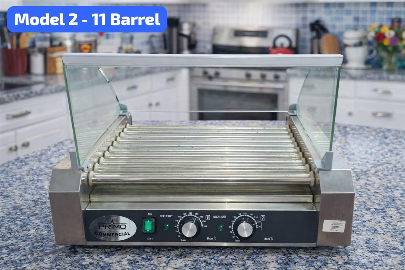 Key Features & Benefits High-Capacity Cooking – Serve more hotdogs simultaneously during rush hours Automated Rotating System – Ensures consistent cooking and warming Wide Temperature Range – Perfect for hotdogs, sausages, and specialty items Heavy-Duty Stainless Steel Build – Built to last in demanding commercial settings Eye-Catching Display – Increases visibility and impulse buying Time & Labor Saving – Faster service with minimal manual effort Product Specifications Model: 11-Barrel High-Capacity Material: Stainless Steel & Glass Size: 23" (L) × 19.5" (W) × 17" (H) Cooking Barrels: 11 rotating barrels Barrel Size: 17" length × 1" thickness Temperature Control: Dual front & back controls Temperature Range: 50°C – 250°C Power: 2.2 kW Voltage: 110V / 60Hz High-traffic restaurants, cinemas, stadiums, food courts, fairs, festivals, convenience stores, and large events requiring maximum output and reliability.