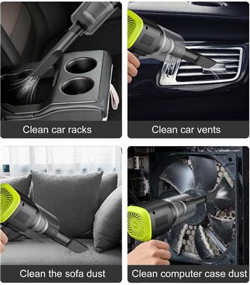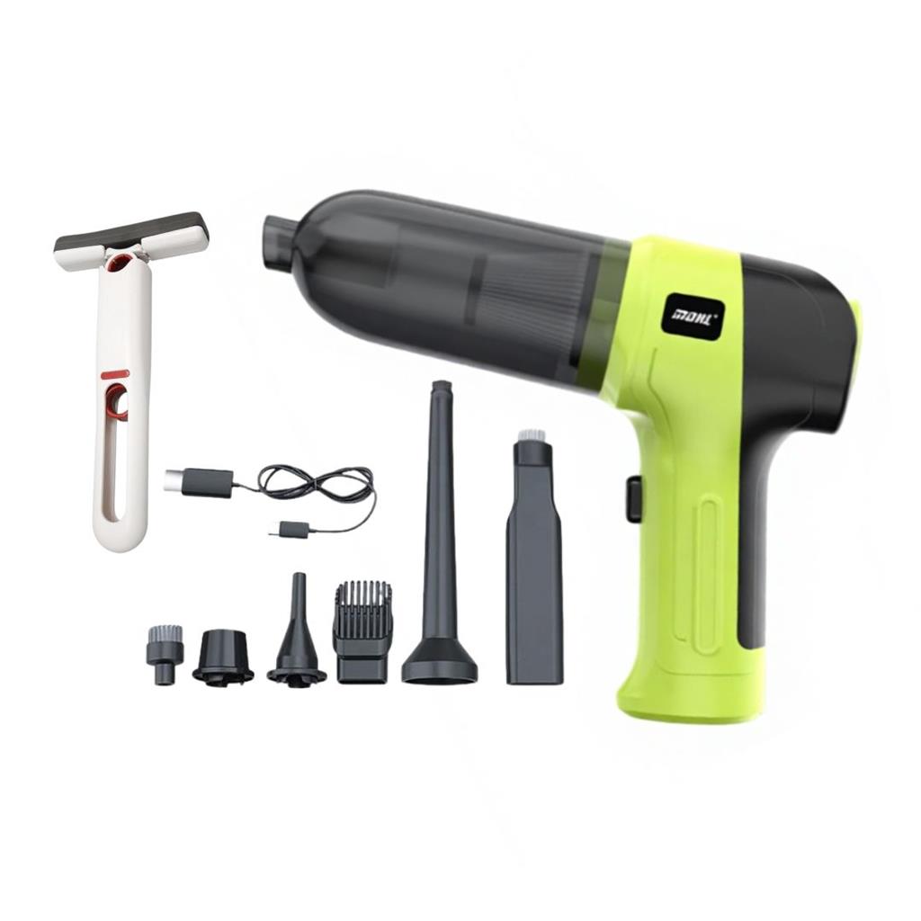 2-in-1 Cordless Vacuum Cleaner & Air Inflator with FREE Mini Mop Cleaner 2-in-1 Vacuum + Air Inflator – Powerful cordless device that works as a vacuum cleaner, blower, and air inflator for car and home use High Suction Power (9000PA) – Equipped with a 120W high-performance motor to easily remove dust, crumbs, sand, pet hair, and debris Vacuum, Blow & Inflate Modes – Clean tight corners, blow dust from vents and keyboards, or inflate air cushions, pool toys, and inflatables in seconds Ultra-Lightweight & Cordless – Weighs only 380 grams, making it easy to carry, handle, and use anywhere without cords Fast Type-C Charging – Recharge quickly and enjoy up to 30 minutes of continuous cleaning on a single charge Quiet Operation – Built-in noise reduction technology ensures smooth and comfortable use 7 Multi-Purpose Attachments Included – Ideal for car vents, crevices, keyboards, upholstery, sofas, carpets, and hard-to-reach areas FREE Mini Mop Cleaner – Perfect for wiping spills and finishing touches after vacuuming Compact & Portable Design – Fits easily in car storage, backpacks, or drawers Perfect for Car & Home Cleaning – Ideal for daily car detailing, home cleaning, travel, and quick cleanups