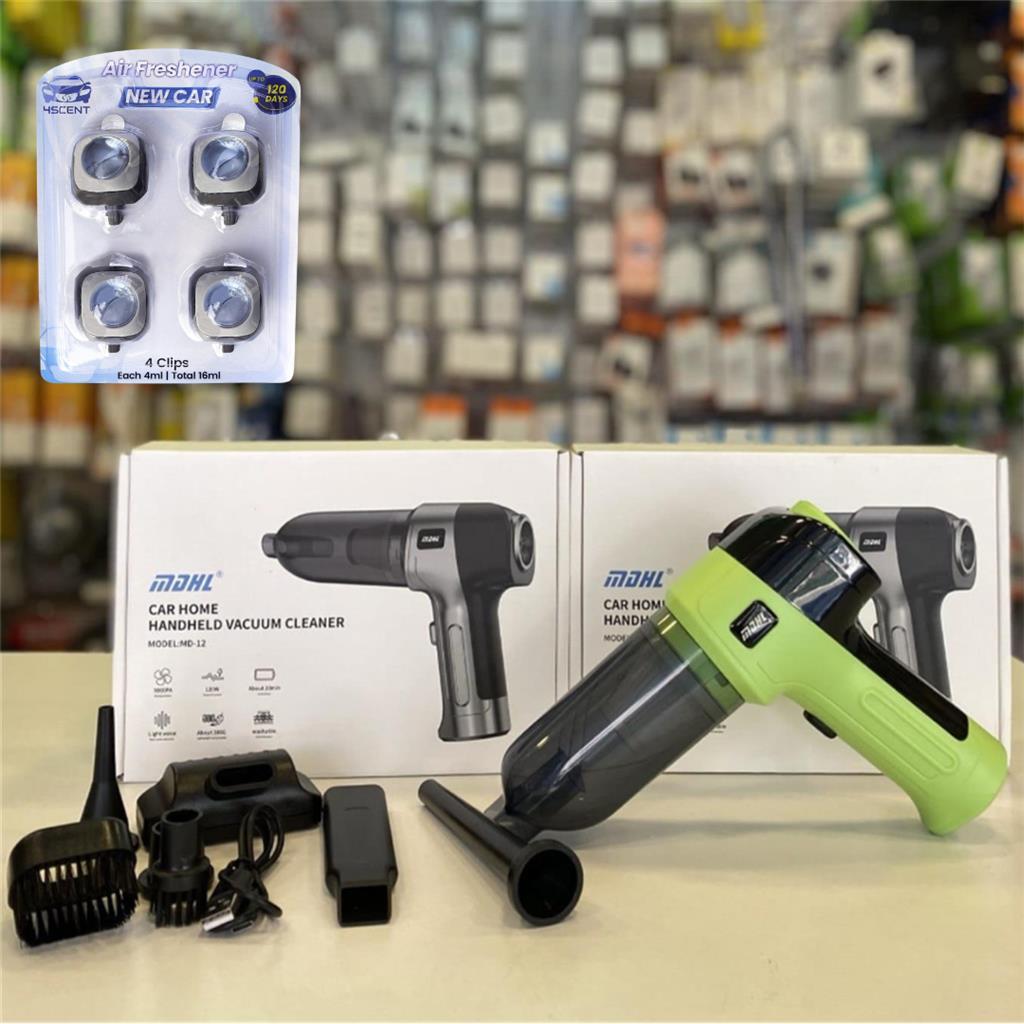 🚗✨ Car & Home Refresh Set – Mother’s Day Special: • 🧹 2-in-1 Cleaning & Freshness Combo includes MDHL Handheld Vacuum + 4SCENT Air Fresheners • 💨 Powerful 9000PA Suction removes dust, crumbs, and debris quickly and efficiently • ⚡ 120W High Performance Motor delivers strong, consistent cleaning power • 🔋 Cordless & Rechargeable up to 30 minutes runtime for flexible use anywhere • 🪶 Ultra-Lightweight (380g) easy to carry and handle without strain • 🔇 Quiet Operation clean without disturbing others • ♻️ Washable & Reusable Filter eco-friendly and cost-saving design • 🚗 Perfect for Car & Home Use ideal for seats, carpets, sofas, and tight spaces • 🌿 4SCENT “New Car” Air Fresheners (4-Pack) keeps spaces smelling fresh up to 120 days • 🔘 Easy Clip-On Design fits securely into car vents for instant freshness • ✨ Enjoy a Clean & Fresh Environment feel like a “just-cleaned” space every day • 🎁 Perfect Mother’s Day Gift practical, thoughtful, and easy to use SOLD BY SMART TECH ELECTRONICS