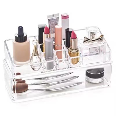Uses & Benefits – Acrylic Cosmetic Organizer + Lipstick Holder Maximize your space with a smart 2-tier design and multiple compartments for all your makeup essentials. Keep lipsticks perfectly displayed and brushes neatly organized in one sleek unit. Perfect for Any Space Elevate your vanity, keep bathroom essentials tidy, or store office supplies—all in a compact design that fits on countertops or inside drawers. Versatile enough for every room, blending style with function. Benefits of Acrylic Material Crystal-clear and shatterproof, acrylic lets you see everything at a glance while offering durable, lightweight protection. Easy to clean and maintain, it stays shiny and elegant through everyday use. Perfect Gift Idea A chic and practical gift for makeup lovers of all ages and occasions, from birthdays to bridal showers. Combines style and usefulness for a present anyone would love to receive.