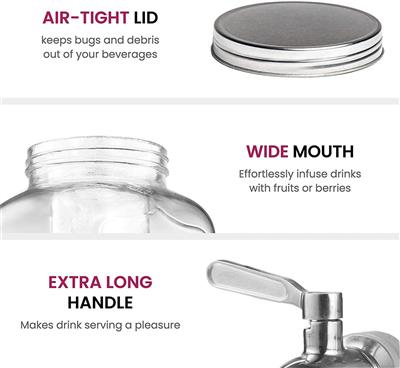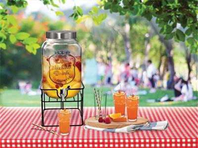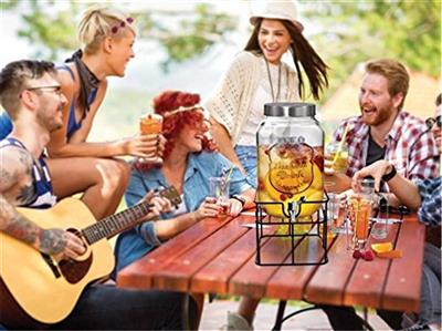 Product Features: 4-Liter Glass Drink Dispenser – Perfect capacity for serving water, juice, cocktails, iced tea, sangria, or punch. Premium Black Metal Stand – Sturdy, raised design for easy, mess-free pouring. Non-Drip Spigot – Ensures smooth, controlled flow without spills. 2 Stainless Steel Cups Included – Gold-accented square design adds a touch of elegance. Shatter-Proof & Eco-Friendly Cups – Durable, reusable, and keeps drinks cooler for longer. Wide-Mouth Opening – Easy to add fruits, herbs, or ice for infused beverages. Easy to Clean – Hassle-free maintenance for everyday convenience. Stylish & Versatile – Ideal for daily use, family dinners, holidays, weddings, BBQs, parties, picnics, and office events. Blends Vintage Charm with Modern Design – A statement piece that elevates any setting.