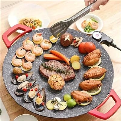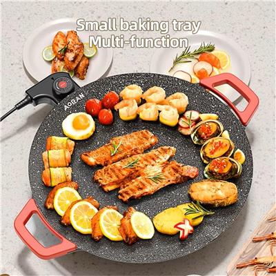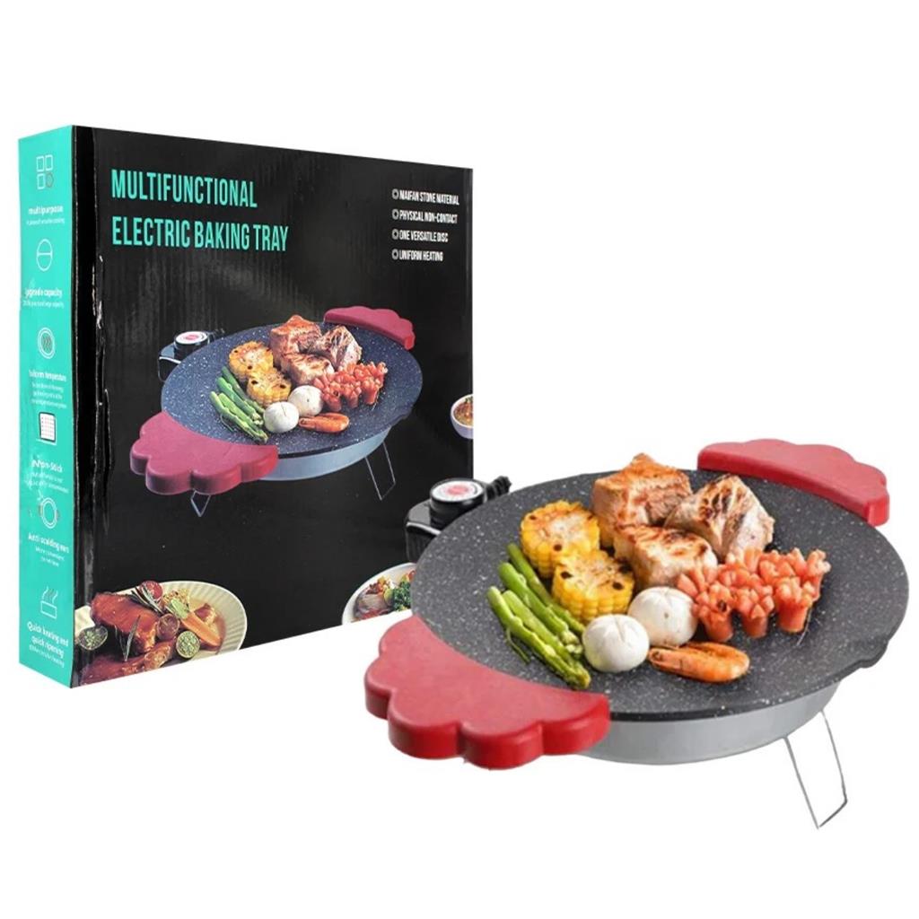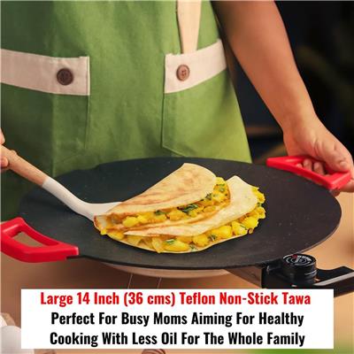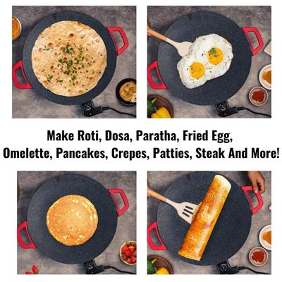 🍳 Large 36CM Non-Stick Cooking Surface – Cook more in one go! Perfect for rotis, veggies, and meats without sticking or burning. ⚡ Powerful Heating Element – Heats up fast and evenly, saving time while ensuring perfect, consistent results. 🔥 Adjustable Temperature Control – From gentle warming to high-heat searing — total control for every dish. 🥗 Excess Oil Drainage Design – Smart grooves remove extra oil and fat, giving you healthier, tastier meals. 🧽 Durable Non-Stick Coating – Food releases easily, cleanup is a breeze, and hygiene stays top-notch. 🖐️ Heat-Resistant Handles – Cool-touch red handles ensure safe, comfortable carrying even when hot. 🎒 Portable & Lightweight Design – Great for home kitchens, picnics, camping, or small gatherings. 💧 Easy to Clean & Maintain – Just wipe or rinse — no stubborn residue, no stress.