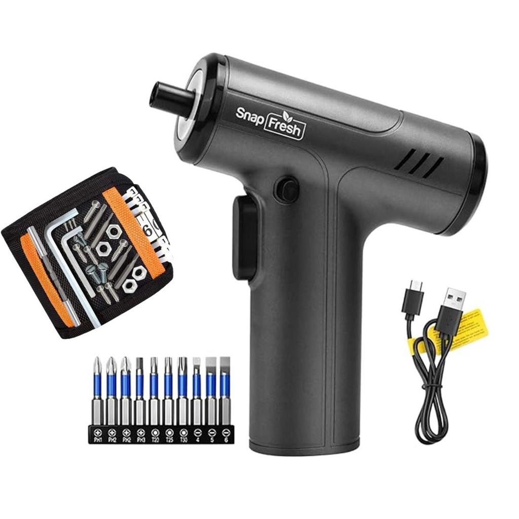 10-in-1 Bit Set: Includes 4 Phillips (PH1, PH2 x2, PH3), 3 Torx (T20, T25, T30), and 3 Hex (4mm, 5mm, 6mm) bits. Cordless & Rechargeable: USB-powered battery for on-the-go use. High Torque Motor: Delivers strong, consistent power for various tasks. Built-in LED Light: Ideal for dark or tight workspaces. Magnetic Bit Holder: Fast, secure bit changes. Ergonomic & Lightweight: Non-slip grip for comfortable one-handed use. Versatile Use: Perfect for furniture assembly, electronics repair, bike maintenance, and more. FREE magnetic wrist band Sold by Techkart