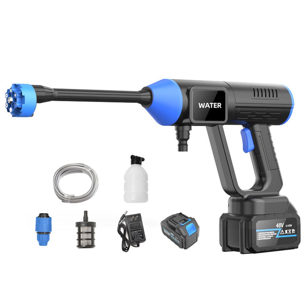 Product Highlights: 6-in-1 Adjustable Nozzle – Switch between 6 spray patterns for every cleaning need — from pinpoint precision to wide-area rinsing. Powerful 48V Motor – High-performance cleaning with 435 PSI (30 Bar) pressure for tough dirt and grime. Cordless & Portable – Powered by a 12,000 mAh rechargeable battery, delivering up to 30 minutes of uninterrupted cleaning on a single charge. Ultra Lightweight – Weighs only 1.2 kg, designed for one-hand operation and maximum portability. Versatile Water Source Use – Draw water from buckets, lakes, bottles, or taps with the extended hose. Foam Bottle Attachment (300ml) – Create thick, rich foam ideal for washing cars, bikes, patios, and outdoor gear. Toolbox-Style Carry Case – All components stored in a durable carry box for easy storage and travel. Multi-Purpose Cleaning – Perfect for cars, bikes, outdoor furniture, driveways, garden watering, and more. Easy Installation – Quick-connect design for fast, hassle-free setup.