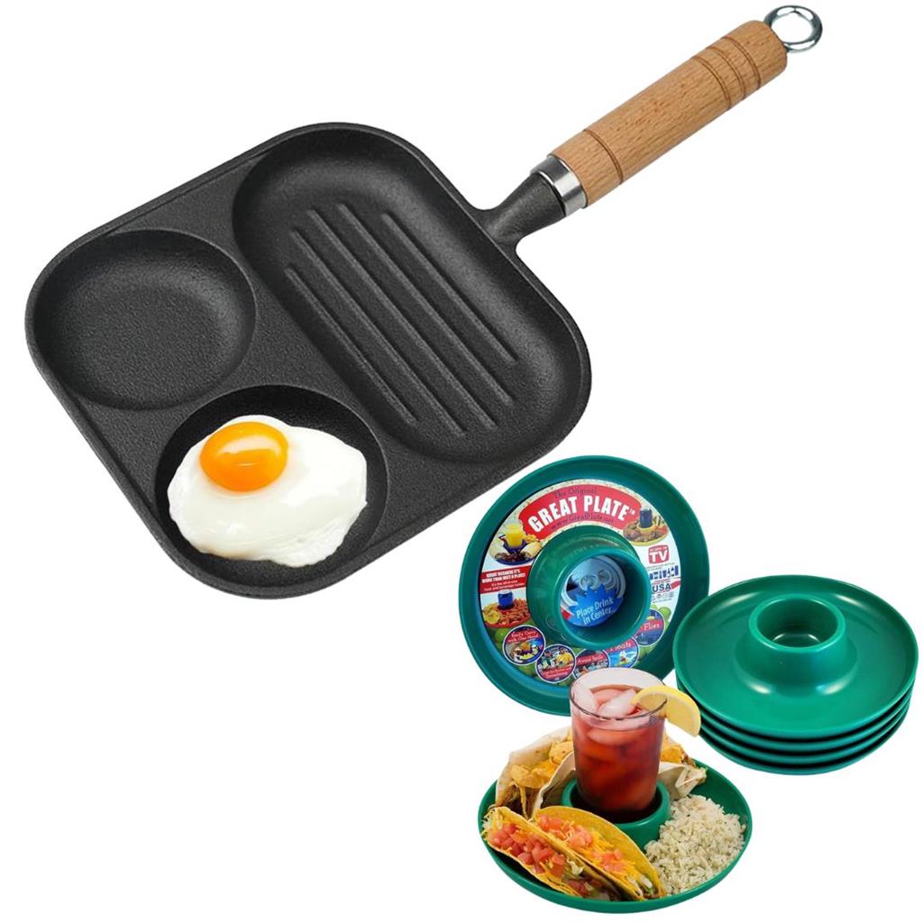3-Section Cooking Surface – Fry eggs, toast patties, and sauté sides all at once—no flavor crossover. Built-in 2-Cup Egg Mold – Shape perfect round eggs or patties, ideal for breakfast sandwiches. Non-Stick Granite Coating – Requires minimal oil and makes post-meal cleanup effortless. Compact Size (7 x 7 inches) – Ideal for quick meals in small kitchens, RVs, or dorms. Even Heat Aluminum Base – Uniform cooking across all compartments for no undercooked spots. Stay-Cool Ergonomic Handle – Wood-grain grip stays safe and stylish while cooking. Perfect for Breakfast & Beyond – Whip up pancakes, quesadillas, grilled veggies, or snacks. Easy to Store & Travel-Friendly – Lightweight and compact, it fits in tight spaces or goes with you on the road. Healthier Cooking Made Easy – Less oil, less mess, more nutrition. Kid-Friendly & Family-Approved – Makes fun, portioned meals that kids love—and you don’t have to scrub. BONUS DEAL : GET FREE PLASTIC PARTY PLATE SOLD BY - URBAN HOMES TT