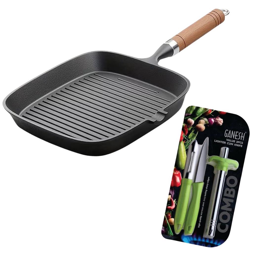 Healthier Cooking – Eco-friendly granite coating requires less oil, making meals lighter and cleaner. Quick Cleanup – Nonstick surface means no stuck-on food; just a simple wipe or rinse. Compact Yet Mighty – Ideal for small portions or solo meals without wasting space or heat. Energy Efficient – Rapid heat-up and even distribution cuts down cooking time and energy use. Pour Spouts – Easily drain oils or sauces without making a mess. Heat-Resistant Handle – Bakelite handle stays cool and safe to the touch while cooking. Universal Compatibility – Works on all stove types: gas, electric, ceramic, and induction. Built to Last – Advanced die-cast aluminum body resists warping, chipping, or flaking. Bonus Value – GET FREE LIGHTER UTENSIL SET! SOLD BY - FITNESS PRO TT