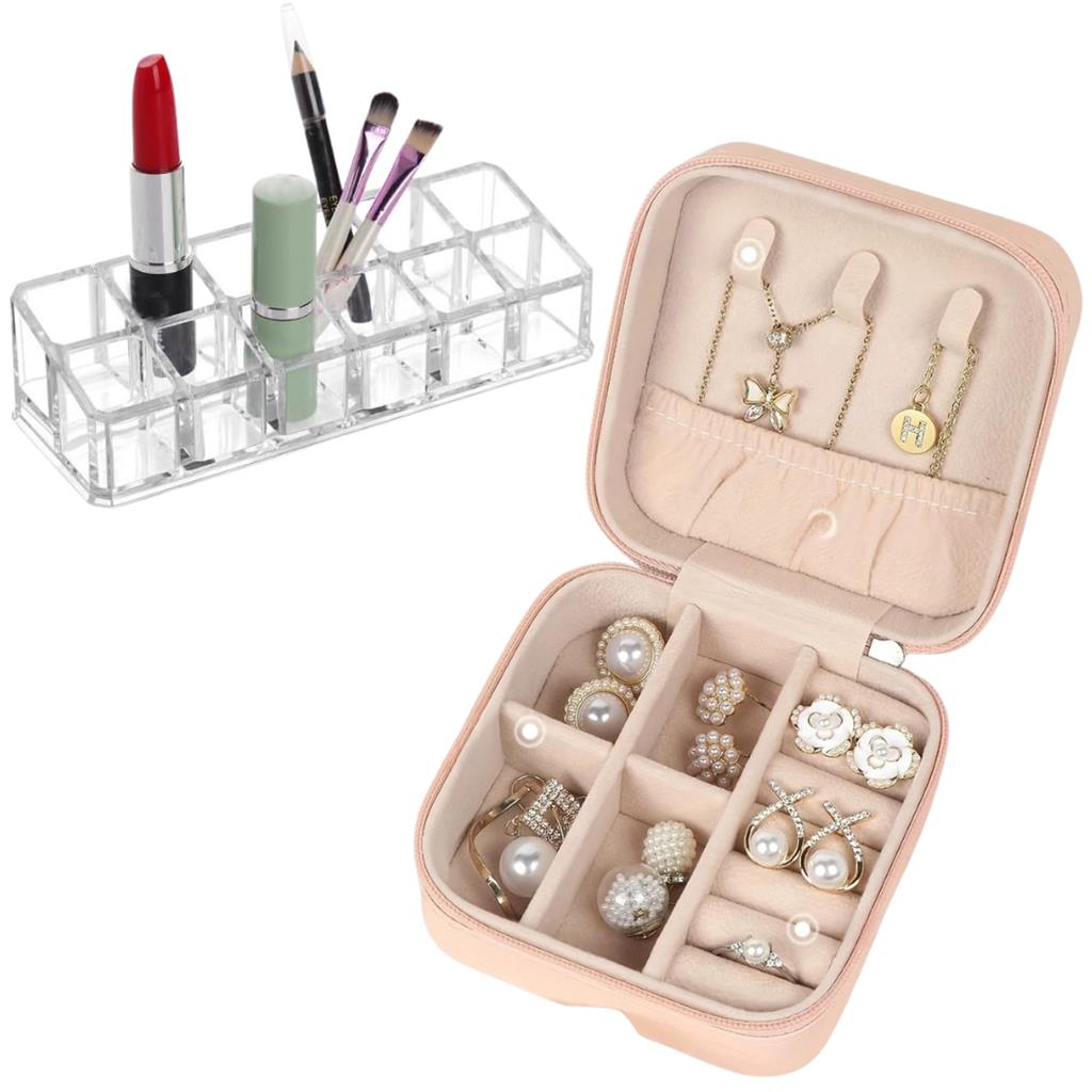 Product Description Points: Effortless Elegance: Compact Chic White PU Leather Jewelry Organizer — your stylish way to keep sparkle safe and organized this Christmas. Festive Freebie: Get a FREE Acrylic Cosmetic Organizer (12-grid display rack) when you buy two or more jewelry boxes — perfect for lipsticks, brushes, and nail polishes. Premium Design: Crafted from smooth white PU leather with a soft velvet-lined interior to protect and display your precious pieces in luxury. Travel-Friendly: Sleek, lightweight, and portable — fits easily into handbags or suitcases, keeping your jewelry tangle-free wherever you go. Smart Organization: Designed with dedicated slots for rings, earrings, and necklaces, ensuring everything stays neat and accessible. Easy to Maintain: Durable and easy to wipe clean — keeps your treasures looking pristine and polished. Perfect Gift Idea: Can be personalized for loved ones — a small, thoughtful, and elegant Christmas gift that shows you care. Elegant Combo: The PU leather box + transparent acrylic organizer create a timeless, coordinated set that elevates your vanity or travel kit.
