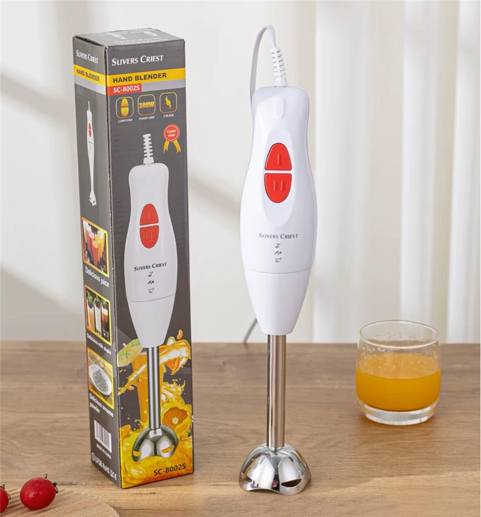 Stainless Steel 2-Speed Hand Blender — Key Description Points: 300W Heavy-Duty Motor — delivers fast, smooth, and consistent blending power. High Performance Up to 15,000 RPM — perfect for quick mixing, pureeing, and crushing. 2 Speed Modes — choose between gentle blending or high-speed power. 2 Ultra-Sharp Stainless Steel Blades — designed for smooth, even results every time. Fast-Start System — blends ingredients in seconds for maximum efficiency. Ergonomic Non-Slip Grip — comfortable, secure hold for strain-free continuous blending. Versatile Use — ideal for smoothies, soups, milkshakes, hummus, salsas, protein shakes, sauces, and homemade mayonnaise. Durable Build Quality — long-lasting motor designed to withstand continuous use. Compact & Easy to Store — fits perfectly into any kitchen setup. Simple to Clean & User-Friendly — hassle-free maintenance for everyday use. Perfect for Home Cooks & Food Lovers — enhances speed and convenience in the kitchen.