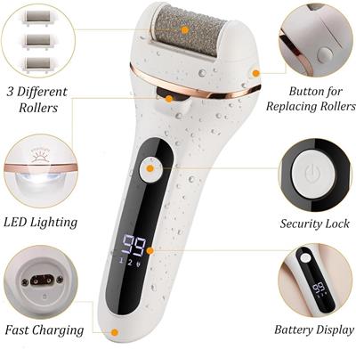 MDHL Electric Rechargeable Foot Grinder ✔ 3-in-1 Pedicure System — Includes 3 interchangeable roller heads for light smoothing, regular care, and deep callus removal. ✔ Built-in LED Light — Illuminates hard-to-see areas so you never miss a spot. ✔ 2 Speed Settings — Choose between gentle mode or powerful grinding for tough calluses. ✔ USB Rechargeable — Cordless convenience with fast charging; fully charges in 2.5 hours. ✔ LCD Battery Display — Shows real-time battery level and reads “100” when fully charged. ✔ Wet & Dry Use — Safe for shower use or dry touch-ups anytime. ✔ Ergonomic & Easy to Use — Lightweight, comfortable grip for smoother control. ✔ Includes Cleaning Brush — Keeps your device hygienic and long-lasting.